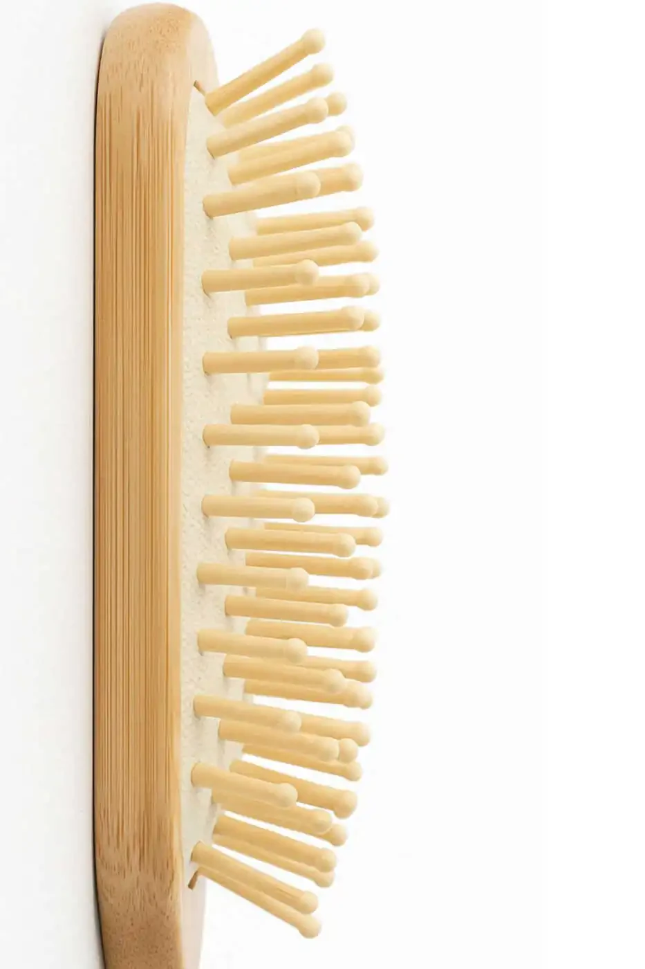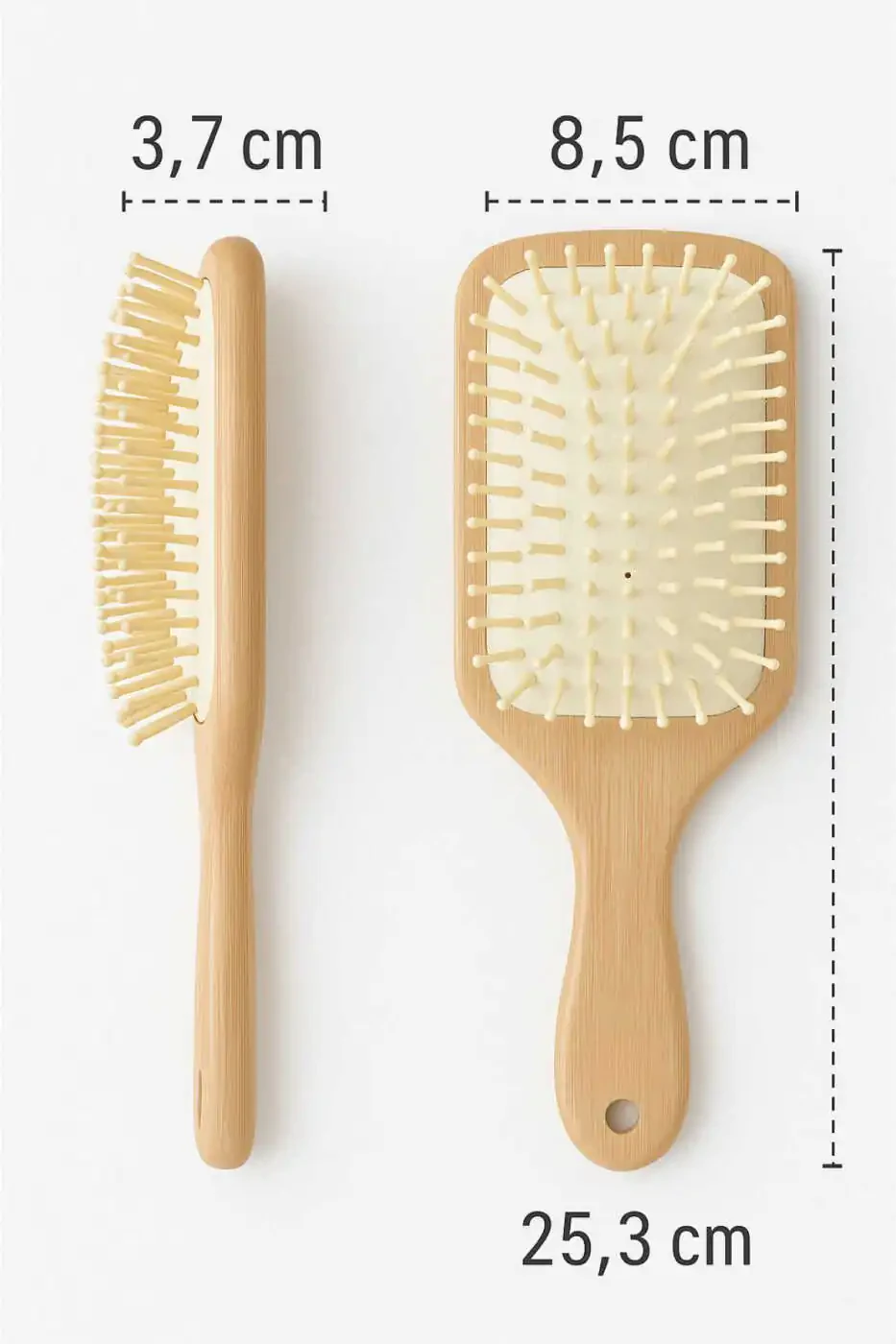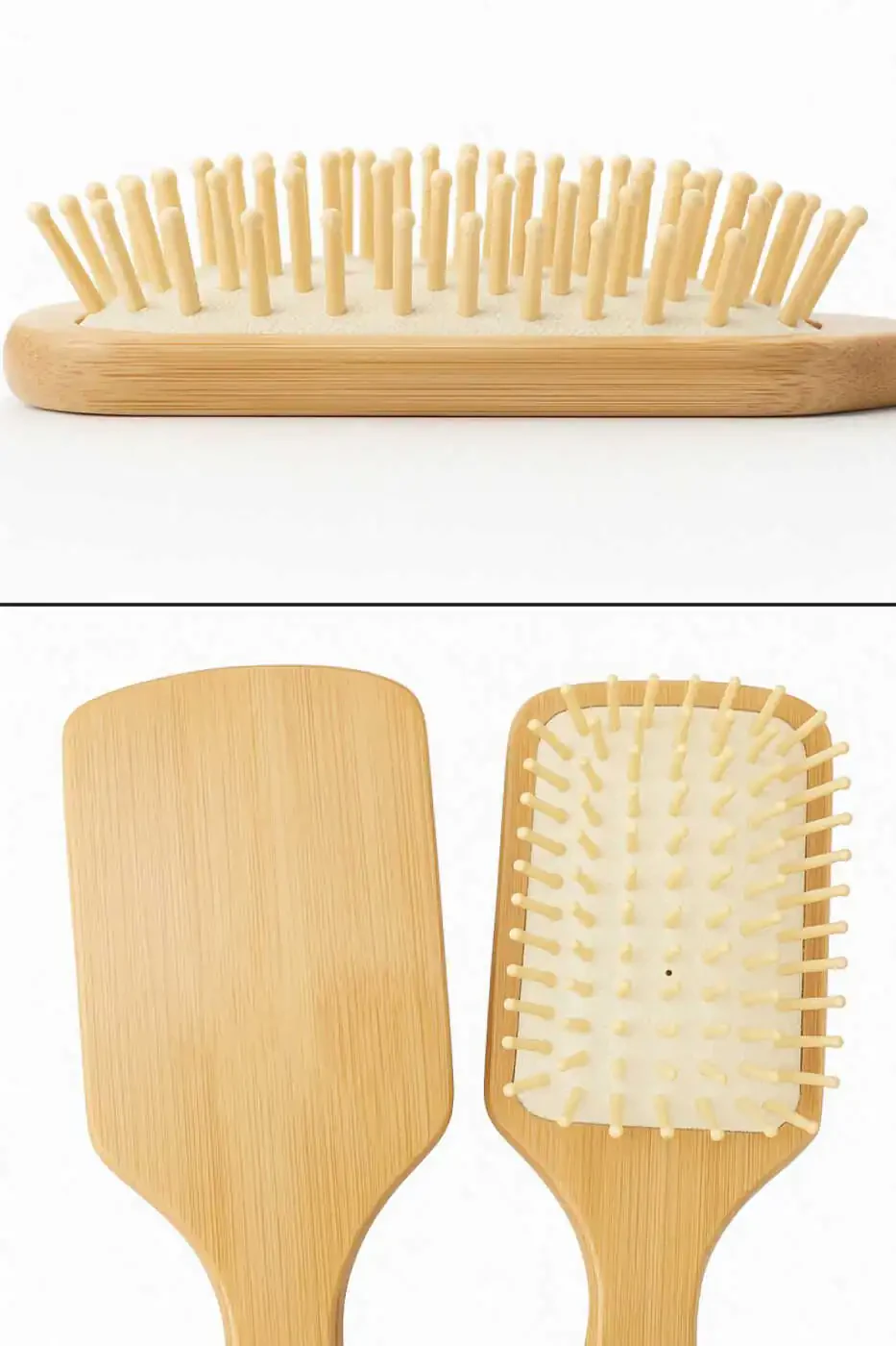 Щетка для волос из бамбука с щетиной подходит для всех типов волос. Будь то тонкие, густые или вьющиеся, эта щетка нежно и эффективно расчесывает ваши волосы. Она также имеет компактный дизайн, который можно брать с собой в путешествия.