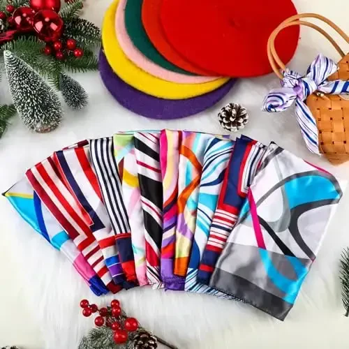 Shinymoon 24-Piece Wool Beret Hat Wholesale Winter Artist Beret Warm French Hat with Silky Neck Scarves for Women Girls Ladies offers a perfect package to add style and warmth to your wardrobe. This set includes 12 different colors of eye-catching French berets and 12 uniquely designed silky scarves, allowing you to create a different style for every day. Suitable for both adults and children, the berets offer a comfortable and stylish look, while the scarves become indispensable parts of your wardrobe with their versatile use. The high-quality wool and acrylic blend berets offer all-day comfort with their soft texture, while the polyester scarves stand out with their vibrant, non-fading colors. Usable not only as hats, but also on your travels, outdoor activities, or as gifts for loved ones, this set allows you to reflect your style and elegance at all times. With a variety of color options to match every outfit, try this beret and scarf set now and add a new dimension to your style. The versatility of the package makes it suitable for every occasion; it is a perfect choice for daily use, travel, special occasions, or as unforgettable gifts for your friends and family. The high-quality materials and stylish design of our product ensure long-lasting use and a stylish appearance. With this extensive and versatile package, you are guaranteed to find the perfect complement to every outfit. Don't miss this unique set that provides protection against the weather while also contributing to your style!