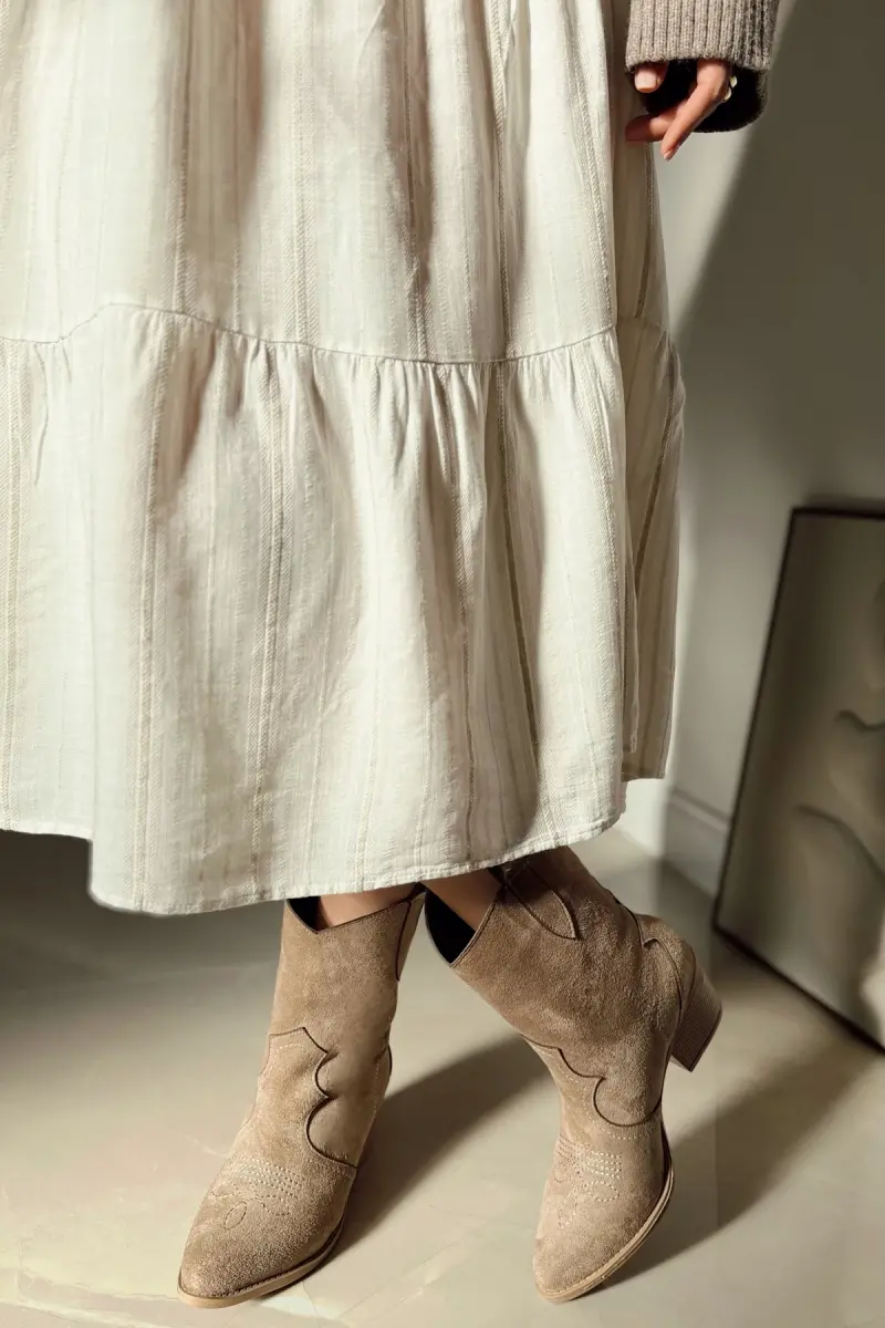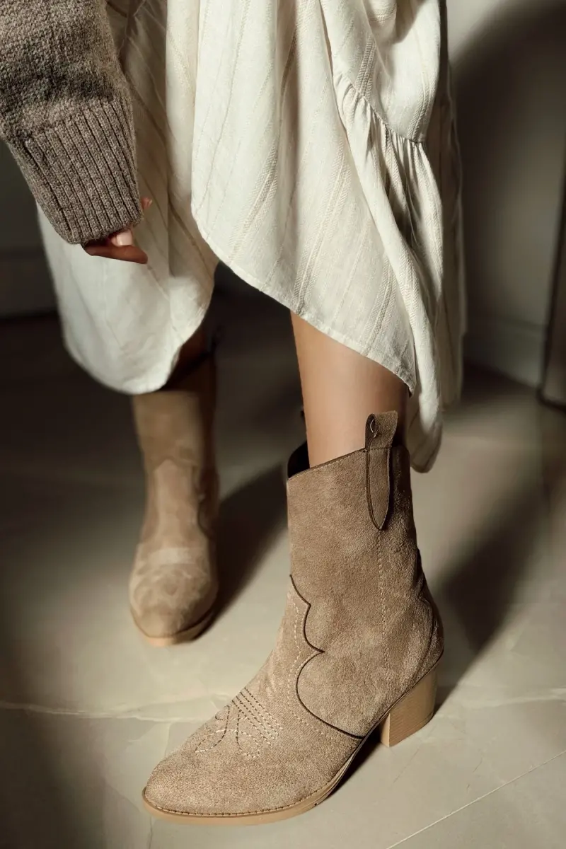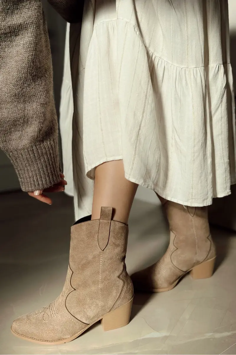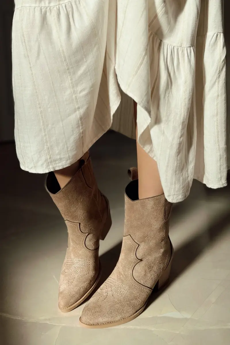 Shirley Nakışlı Western Kadın Kovboy Çizme Bot-Bej