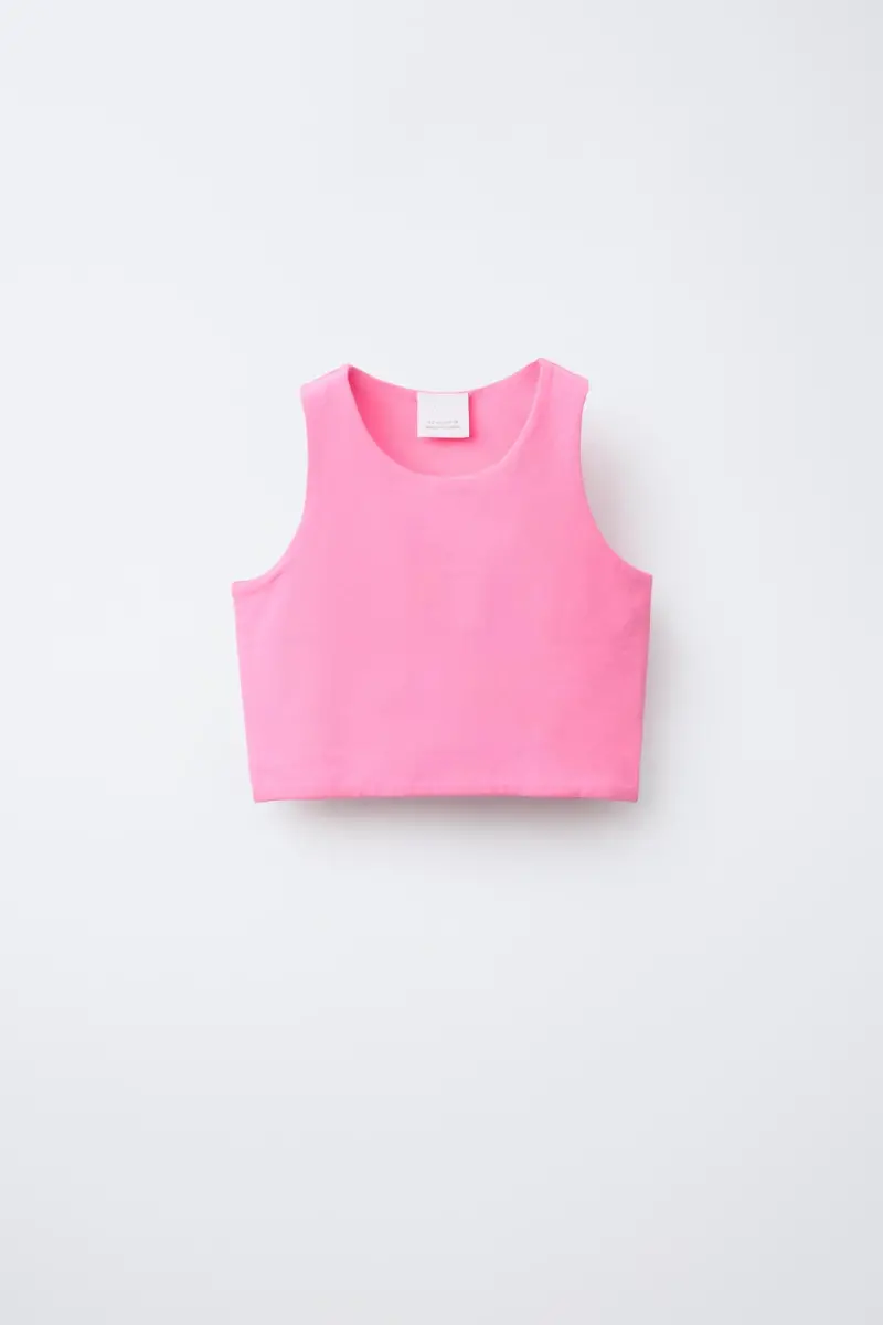 Designed with the energy of neon pink, this cropped tank top is a candidate to be an indispensable part of your wardrobe! This vibrant and modern design will add movement to your daily style and allow you to stand out in your special moments. The crew neck detail offers a classic touch, while the thin straps create a feminine silhouette. Thanks to its 95% cotton fabric, it offers a comfortable wearing experience all day long. Its breathable structure allows you to feel comfortable even in hot weather.This versatile top easily adapts to different combinations. You can achieve a casual look with high-waisted jeans or shorts, or prepare for a more special event with a stylish skirt and heels. It is possible to make a difference in any environment by complementing your style with your choice of accessories. The vibrancy of neon pink helps you reflect your energy and express your style boldly.The comfortable cut of the cropped tank top allows you to look stylish without restricting your freedom of movement. You can use it in different seasons, either alone or combined with a jacket or cardigan. Thanks to its durable fabric, it offers long-lasting use and preserves its color for a long time. Refresh your style and reflect your energy in every environment with the neon pink cropped tank top. This unique piece will be one of the most loved in your wardrobe!
