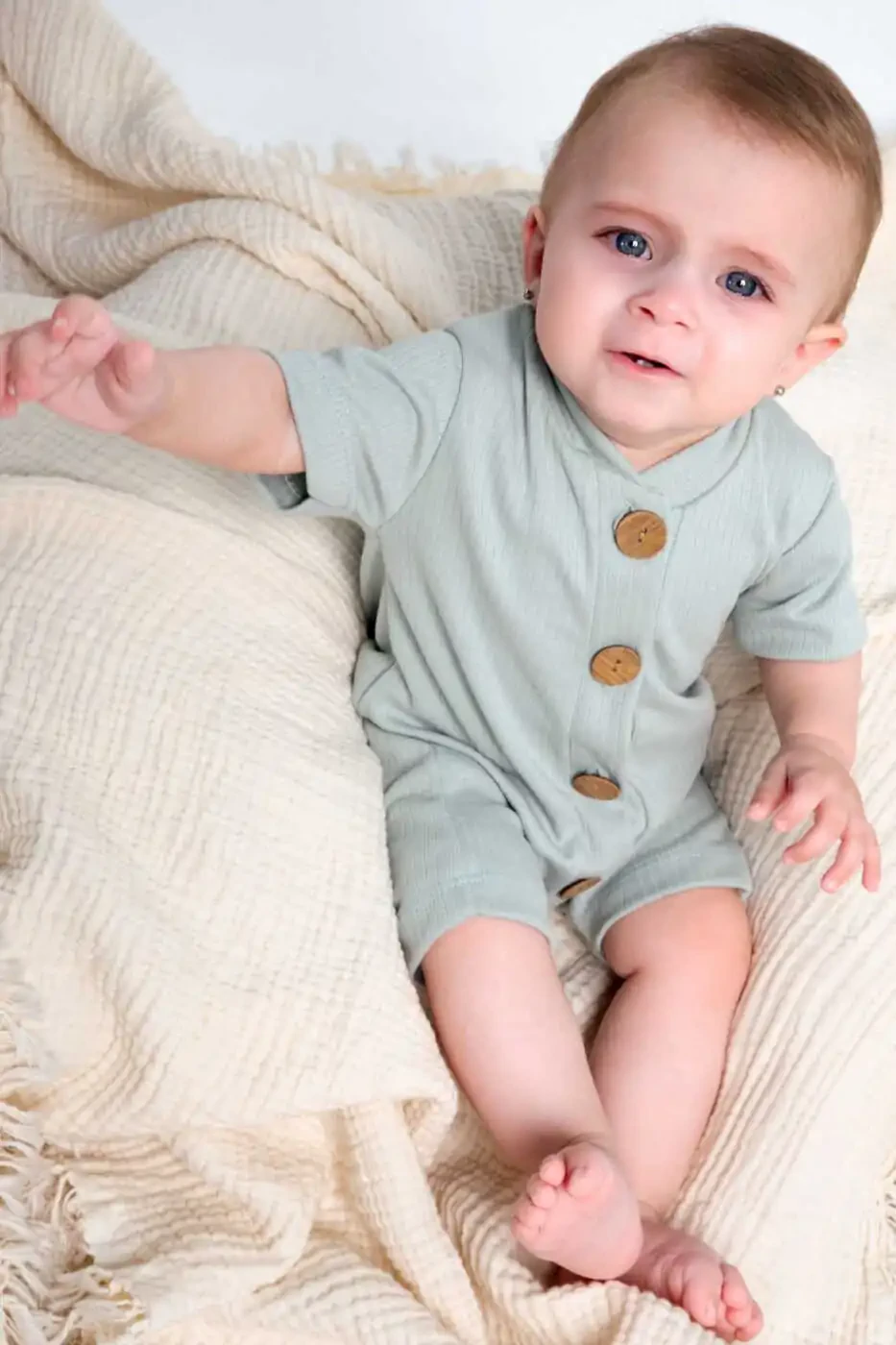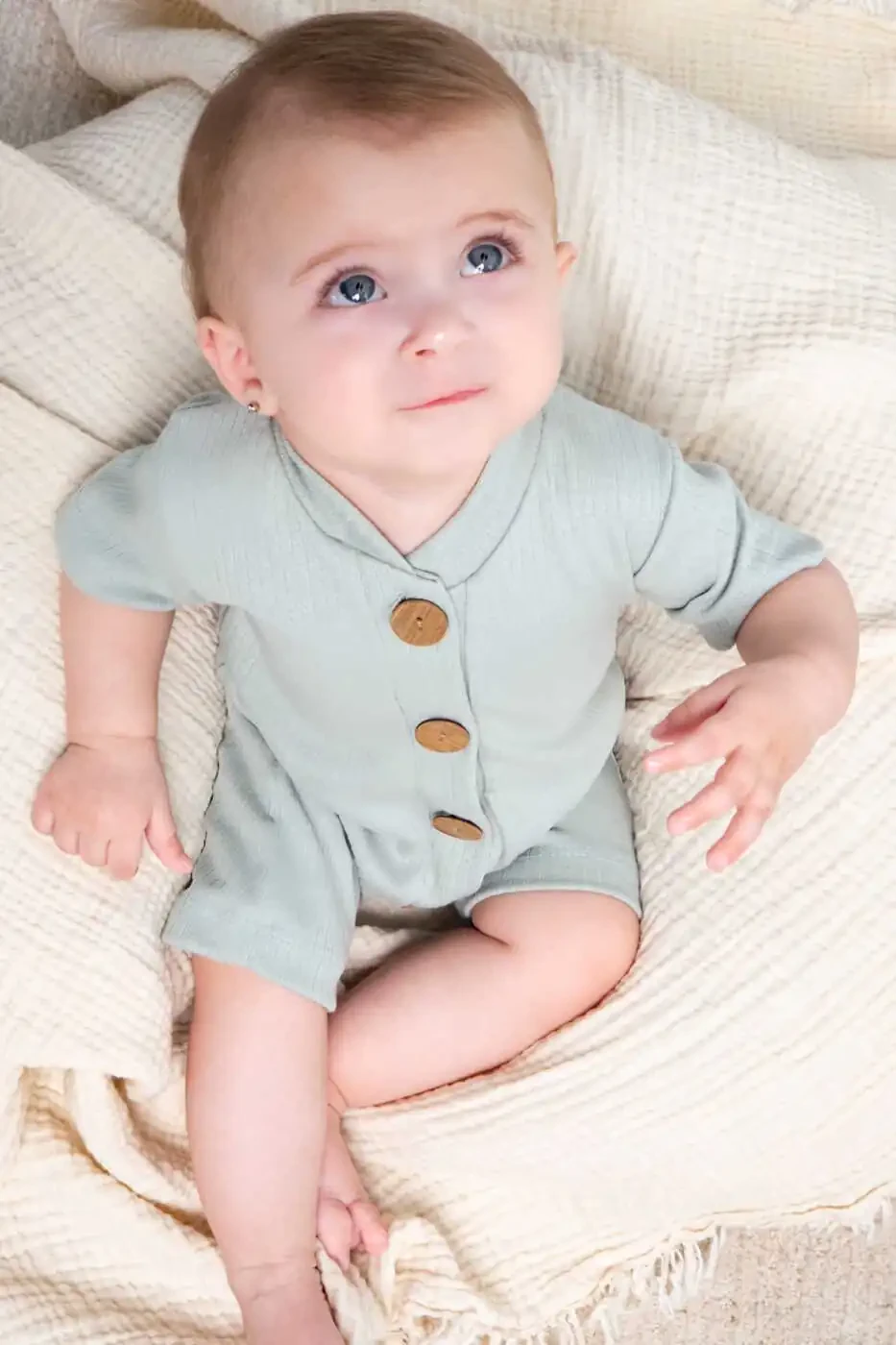Your baby's comfort and health are our priority. Therefore, we have carefully prepared the Short Sleeve Wooden Button Organic Jumpsuit Baby Set to accompany your baby's most beautiful moments.