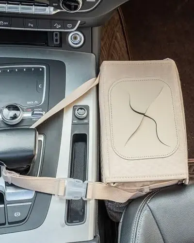 • Adjustable straps: Can be hung on the front or back seat, center console, or gear stick.