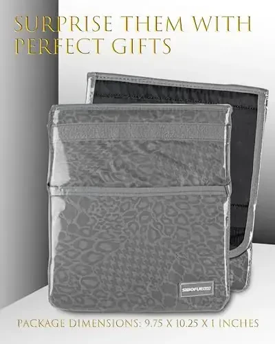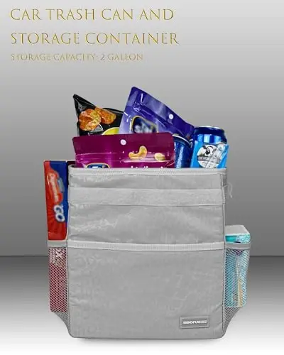 Keep your car interior organized and stylish with the SIBOFUEGO Cute Car Trash Can! This is not just a trash can, but also a cute accessory that adds a fun touch to your vehicle. With its leopard-patterned gray design, it perfectly complements your car's interior decor and encourages everyone to throw trash inside. The SIBOFUEGO car trash can improves your driving experience by combining practicality and aesthetics.This car trash can measures 9.25 x 5.25 x 10.75 inches and takes up minimal space in your vehicle thanks to its rectangular prism design. Its compact structure allows it to be used without restricting passengers' legroom. It can be easily mounted on all types of vehicles, from cars to trucks, SUVs, and others. So you can take advantage of this handy trash can regardless of your vehicle model.Installing and folding the SIBOFUEGO car trash can is extremely easy. Thanks to its adjustable strap, it can be hung on the front or rear seat, center console, glove box, or even the gear lever. You can adjust the length of the strap as you wish, eliminating the problem of swaying while driving. When not in use, you can easily fold it up to save space. This feature provides great convenience, especially on long journeys or in crowded city traffic.This multifunctional car trash can is ideal not only for throwing away your garbage but also for keeping your drinks cool. Thanks to the two mesh pockets on the sides and the front pocket, you can also neatly store small items such as tissues, toys, bags, snacks, and umbrellas. The SIBOFUEGO car trash can not only keeps your vehicle clean but also helps you organize your belongings.The SIBOFUEGO truck trash can is made using high-quality waterproof Oxford polyester material and a thick waterproof lining. This makes it durable, leak-proof, and easy to clean. You can easily empty the trash inside and wash it when needed. This reusable trash can helps keep your vehicle tidy while allowing you to make an environmentally conscious choice. With SIBOFUEGO, keeping your car clean, tidy, and stylish is now very easy!