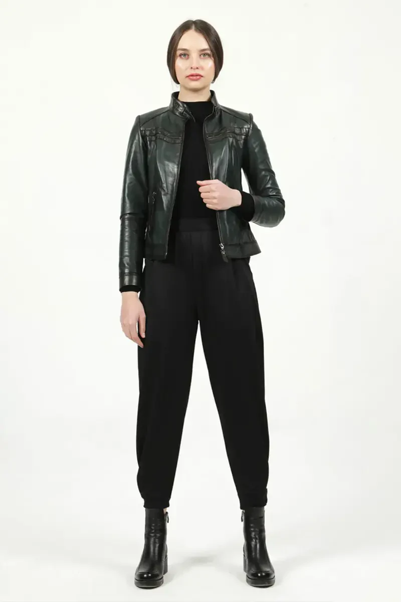 Siena ayollar uchun tor bichimli haqiqiy charm kurtka zamonaviy ayolning uslubli va o'ziga xos pozitsiyasini aks ettiruvchi maxsus dizayndir. Ushbu kurtka yuqori sifatli haqiqiy charmdan ishlab chiqarilgan bo'lib, chidamlilik va uzoq muddatli foydalanishni kafolatlaydi. Yashil rangning yorqin va dinamik energiyasi har qanday kombinatsiyangizga o'zgacha havo bag'ishlaydi, tor bichimli kesimi esa tana chiziqlarini nozik tarzda ochib beradi. Kurtkadagi detallar ishlov berishning naqadar ehtiyotkorlik bilan amalga oshirilganini ko'rsatadi. Fermuar detallari, tikuvlar va cho'ntaklar ham estetik ko'rinishni ta'minlaydi, ham funktsional foydalanish imkonini beradi. Siena charm kurtkasi bahordan kuzgacha har qanday mavsumda kiyilishi mumkin bo'lganligi sababli, garderobingizning eng ko'p ishlatiladigan qismlaridan biriga aylanadi. Uni kundalik kombinatsiya bilanmi yoki yanada hashamatli kiyim bilan to'ldiringmi, bu kurtka har doim sizning uslubingizni bir qadam oldinga olib chiqadi. Ichki astar tufayli qulay foydalanishni ta'minlaydigan Siena charm kurtkasi, ayni paytda nafas oladigan tuzilishi bilan terlashni oldini oladi. Shu tarzda kun bo'yi o'zingizni qulay va erkin his qilasiz. Siena ayollar uchun tor bichimli haqiqiy charm kurtka shunchaki kiyim emas, balki hayot tarzi ifodasidir. O'ziga ishongan, uslubli va zamonaviy ayollarning tanlovi bo'lgan bu kurtka garderobingizning eng qimmatli qismlaridan biriga aylanishga nomzoddir. Nafosat, qulaylik va sifatni birgalikda taqdim etadigan Siena charm kurtkasi bilan har qanday muhitda farq yarating. Ushbu kurtka nafaqat tashqi ko'rinishingizni, balki ruhingizni ham aks ettiradi va sizni yanada ishonchli his qildiradi. Siena charm kurtkasi bilan uslubingizni to'ldiring va o'zingizni maxsus his qiling. Ushbu kurtka uzoq yillar davomida garderobingizning ajralmas qismi bo'lib qoladi va sizga har doim nafosat bag'ishlaydi.