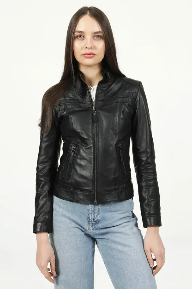 Siena Kadın Slim Fit Hakiki Deri Mont Siyah, DERİCLUB güvencesiyle gardırobunuzun vazgeçilmezi olmaya aday! Şıklığı ve konforu bir araya getiren bu özel tasarım, her ortamda dikkat çekmenizi sağlayacak. Üstün kalite hakiki koyun derisinden üretilmiş olan bu mont, uzun yıllar boyunca ilk günkü gibi kalitesini koruyacak. Dik yaka formu ve modern kesimi ile hem klasik hem de spor kombinlerinizde rahatlıkla kullanabileceğiniz Siena deri mont, gardırobunuzun en çok yönlü parçalarından biri olacak. Metal fermuar detayı, monta ayrı bir hava katarken, yan cepleri sayesinde de kullanışlı bir deneyim sunar. Slim fit kesimi sayesinde vücut hatlarınızı zarifçe ortaya çıkarır ve şık bir siluet oluşturur. İster jean pantolonlarla spor bir tarz yakalayın, ister şık bir elbiseyle kombinleyerek özel davetlerde göz kamaştırın. Ofis şıklığından hafta sonu rahatlığına kadar her anınıza uyum sağlayacak bu deri mont, stilinizi bir üst seviyeye taşıyacak. İç kısmının astarlı olması sayesinde de konforlu bir kullanım sunar. Soğuk havalarda sıcak tutarken, şıklığınızdan ödün vermenize gerek kalmaz. Siena Kadın Slim Fit Hakiki Deri Mont Siyah ile hem kendinizi özel hissedin hem de tarzınızı yansıtın. Bu mont, sadece bir giysi değil, aynı zamanda bir yaşam tarzı ifadesidir. Şıklığı ve kaliteyi bir arada arayan kadınlar için ideal bir seçimdir. Her detayında özenin ve kalitenin hissedildiği bu mont, gardırobunuzun en değerli parçalarından biri olacak.