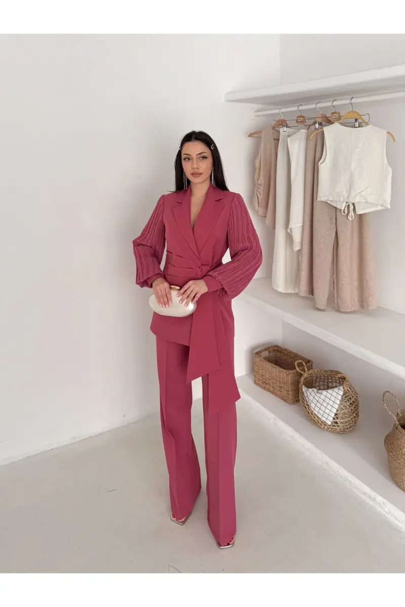 Bu ürün VUNTAL tarafından gönderilecektir.Kampanya fiyatından satılmak üzere 5 adetten fazla stok sunulmuştur.Bir ürün, birden fazla satıcı tarafından satılabilir. Birden fazla satıcı tarafından satışa sunulan ürünlerin satıcıları ürün için belirledikleri fiyata, satıcı puanlarına, teslimat statülerine, ürünlerdeki promosyonlara, kargonun bedava olup olmamasına ve ürünlerin hızlı teslimat ile teslim edilip edilememesine, ürünlerin stok ve kategorileri bilgilerine göre sıralanmaktadır.Bu üründen en fazla 10 adet sipariş verilebilir. 10 adedin üzerindeki siparişleri Trendyol iptal etme hakkını saklı tutar. Belirlenen bu limit kurumsal siparişlerde geçerli olmayıp, kurumsal siparişler için farklı limitler belirlenebilmektedir.15 gün içinde ücretsiz iade. Detaylı bilgi için [page="return_conditions"]tıklayın .- Her mevsim tercih edebileceğiniz şifon kollu ikili takım, konforlu ve şık bir görünüm sunar.- Astarlı yapısı ile rahat bir kullanım sağlar ve dışarıdaki soğuktan korur.- Dokuma materyali sayesinde dayanıklılık ve uzun ömürlü kullanım vaat eder.- Düz deseniyle zamansız bir şıklık yaratırken, geniş paça kesimi modern bir siluet çizer.- Ceket-pantolon alt-üst takım olarak tasarlanmıştırher iki parça da uyumlu ve şık bir kombin oluşturur.- Standart kol tipi ve çift cepli detaylarıyla pratiklik kazandırırken, kuşak detayı belinizi zarifçe sarar.- Normal bel kesimi ile rahat hareket etme özgürlüğü sunarken, orta kalınlıktaki dokuma kumaşı ideal sıcaklık dengesi sağlar.- Tesettür giyim koleksiyonuna ait bu takım, uzun boyu ve regular siluetiyle klasik ortamlarda bile dikkat çeker.- Yetişkin yaş grubuna hitap eden bu parça,