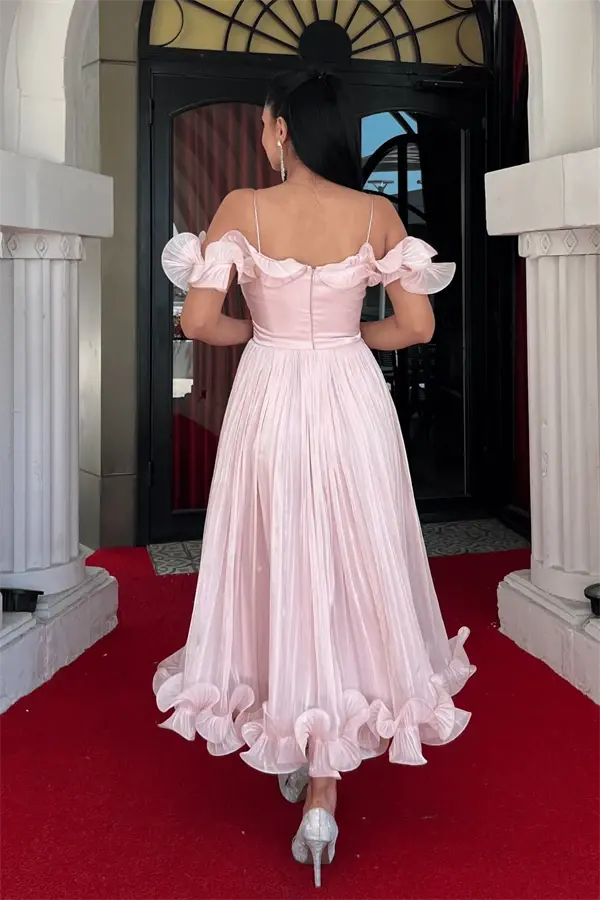 Experience elegance and style with the Chiffon Fabric Ruffle Detail Midi Dress. This eye-catching powder pink dress will accompany you in any environment, from special occasions to everyday use. Thanks to its lightweight and flowing chiffon fabric, it offers comfortable use all day long, while the ruffle details allow you to achieve a dynamic and lively look. Its midi length adapts to all body types, while its elegant cut reveals your body lines in the most beautiful way. It can be easily put on and taken off thanks to the zipper on the back. Thanks to its inner lining, it does not show through and offers comfortable use all day long. In addition, the bustier detail on the chest eliminates the need for an extra bra and provides ease of use. The romantic and feminine feel of the powder color, combined with the dynamism of the ruffle details, creates a unique design. Whether you use it with heels for a special occasion or with sandals for a daily stroll, you will always look stylish and elegant with this dress. It will be indispensable for the summer months thanks to the lightness of the chiffon fabric and the dynamism of the ruffle details. Get ready to attract attention in any environment with this dress, which is a candidate to be one of the most special pieces of your wardrobe. You can prefer this dress, especially in spring and summer, for your special days, invitations, cocktails and even to complete your daily elegance. You can also be very free in accessory selection with this dress and create different styles. You can achieve a simple and elegant look with minimal jewelry, or create an eye-catching combination with flashy jewelry. Chiffon Fabric Ruffle Detail Midi Dress - POWDER is the perfect option for women who are looking for both elegance and comfort. You can be sure that you will feel special and beautiful when you wear this dress. This dress, every detail of which has been carefully designed, will be one of the indispensable pieces of your wardrobe. Moreover, thanks to its high-quality chiffon fabric, you can use it like the first day for many years. Thanks to the lightness of its fabric, it does not take up much space in your suitcase and can accompany you on your travels. You can always achieve a trendy look with the timeless elegance of powder color and the modern touch of ruffle details. This dress is not just a piece of clothing, but also a style statement. You should definitely try this dress to feel special and reflect your style. Let your elegance speak in both your daily life and your special moments with the Chiffon Fabric Ruffle Detail Midi Dress - POWDER. You will always be dazzling with this dress, which will be the pearl of your wardrobe.