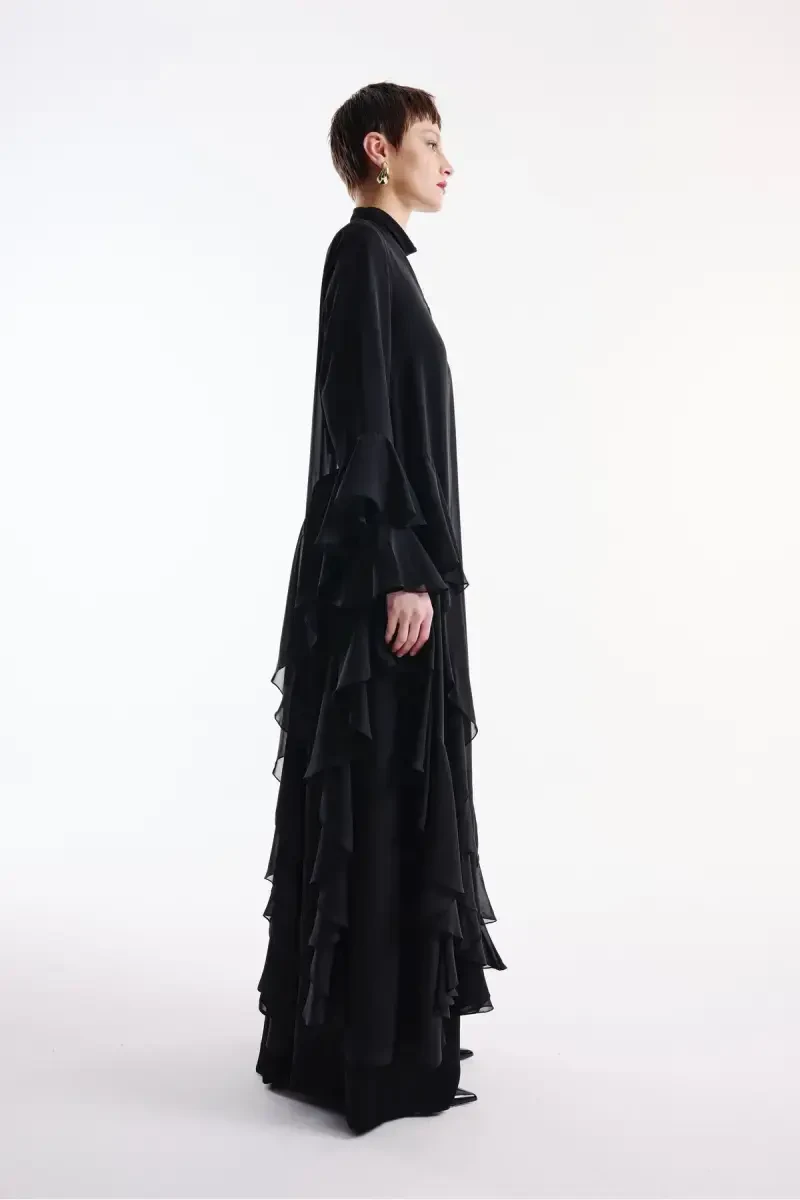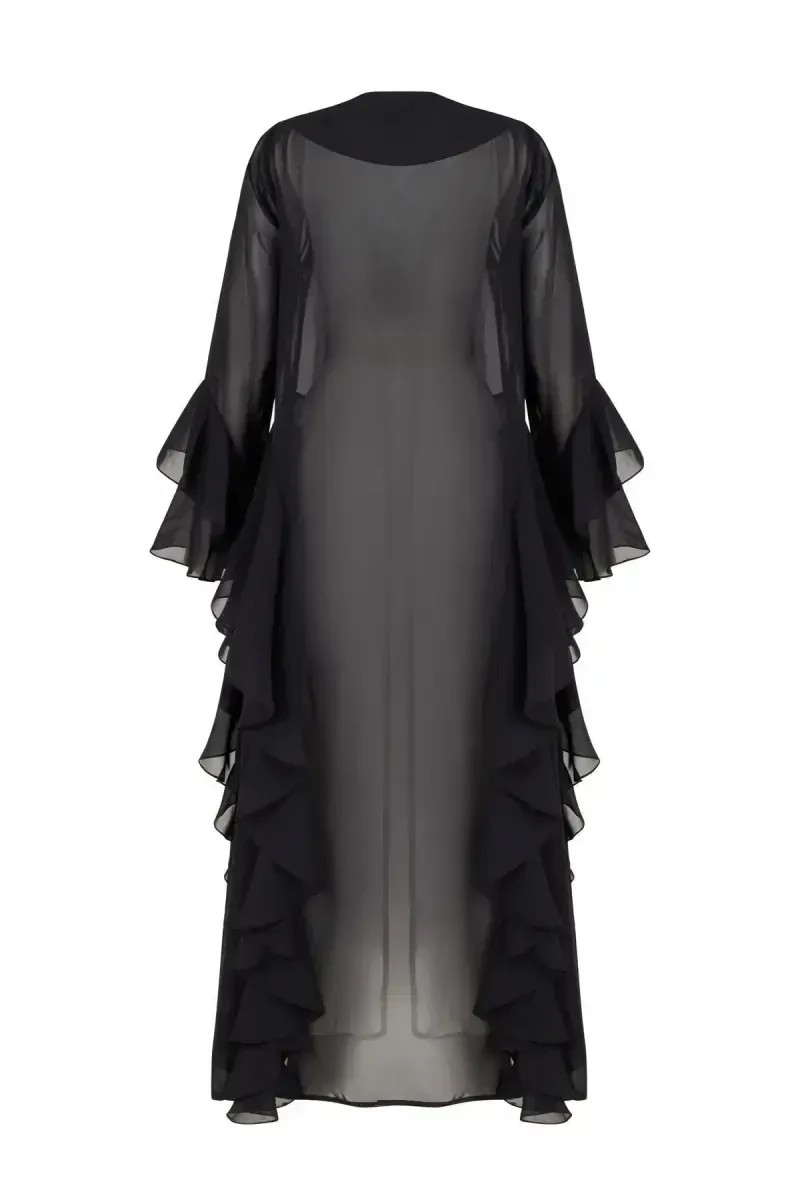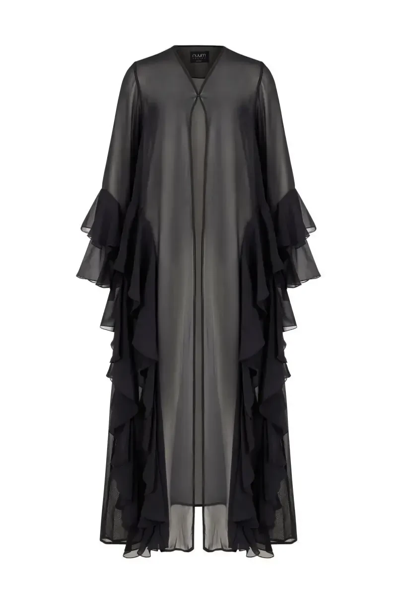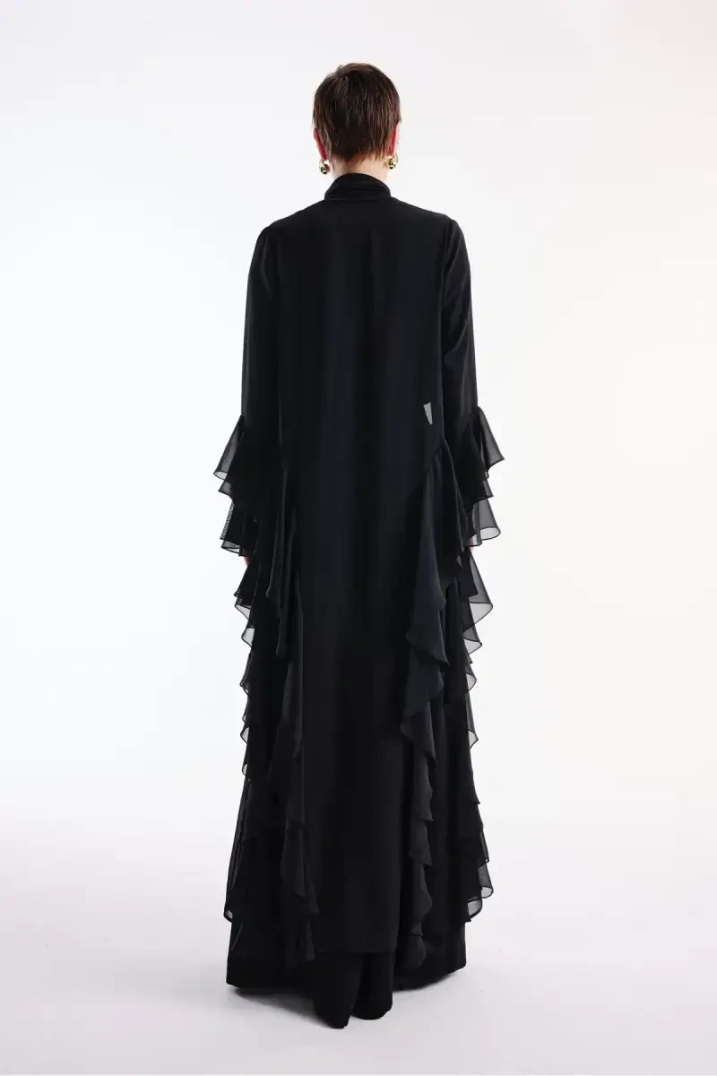 Nuum Design'dan şıklığınızı tamamlayacak, özel günlerinizde ve günlük kullanımınızda rahatlıkla tercih edebileceğiniz Şifon Abaya Volan Detaylı Siyah + Şal-Siyah kombinasyonu ile tanışın! Bu zarif abaya, modern tasarımı ve konforlu kesimiyle öne çıkıyor. Volan detayları, abayaya hareket ve şıklık katarken, siyahın asaleti her ortamda göz kamaştırmanızı sağlıyor. Ürün, ortalama 36-44 beden aralığında kullanıma uygun olup, rahat kesimi sayesinde gün boyu özgürce hareket edebilirsiniz. Tek çıtçıt kapama detayı, kullanım kolaylığı sağlarken, abayanın şık görünümünü bozmaz. Abaya ile birlikte gelen şal, kombininizi tamamlayarak bütünlüklü bir görünüm oluşturmanıza yardımcı olur. Şifon kumaşın hafifliği ve nefes alabilir yapısı, özellikle sıcak havalarda konforlu bir kullanım sunar. İster özel bir davete katılın, ister günlük işlerinizi halledin, bu abaya ile her zaman şık ve zarif olacaksınız. Nuum Design kalitesiyle üretilen bu abaya, uzun ömürlü kullanım için özenle tasarlanmıştır. Gardırobunuzun vazgeçilmez parçası olacak bu şık kombinasyonu kaçırmayın! Siyahın zamansız şıklığı ve volan detaylarının modern dokunuşu ile tarzınızı yansıtın. Hem rahat hem de şık olmak isteyenler için ideal bir seçim. Bu abaya, zarafeti ve konforu bir arada sunarak, her kadının beğenisini kazanacak. Özel tasarımı ve kaliteli malzemesi ile uzun yıllar boyunca kullanabileceğiniz bu abaya, gardırobunuzun incisi olacak. Şıklığınızı tamamlayacak bu özel tasarımı hemen keşfedin ve tarzınızı bir adım öteye taşıyın! Nuum Design'ın özenle hazırladığı bu abaya, her detayıyla sizi özel hissettirecek. Hem günlük kullanımda hem de özel davetlerde rahatlıkla tercih edebileceğiniz bu şık kombinasyon, gardırobunuzun en sevilen parçası olmaya aday.