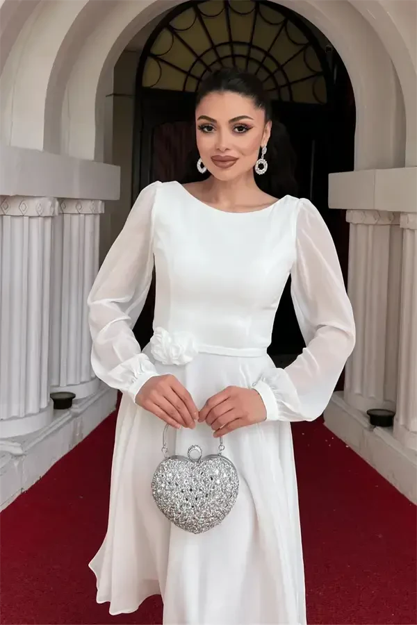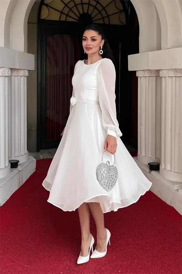 Миди-платье из шифона с цветочной отделкой - БЕЛОЕ, станет незаменимой вещью в вашем гардеробе! Это элегантное платье сочетает в себе стиль и комфорт, позволяя вам блистать в любой обстановке. Это миди-платье, которое вы можете легко надеть как на званый вечер, так и на стильный ужин или для повседневного использования, выделяется своими женственными деталями и качественной тканью. Изящные цветочные детали на подоле платья придают вашему образу романтичный оттенок, а белый цвет подчеркивает вашу невинность и элегантность. Легкий блеск атласной ткани придает платью изысканный вид, а подкладка обеспечивает комфорт в течение всего дня. Застежка-молния сзади позволяет легко надевать и снимать платье, а крой по фигуре идеально сидит на вашей фигуре. Одной из самых ярких особенностей платья является деталь лифа. Эта деталь избавляет от необходимости надевать дополнительный бюстгальтер, предоставляя вам больше свободы и комфорта. Деталь пояса помогает подчеркнуть талию и придать фигуре более стройный вид. Это платье с манжетами на пуговицах идеально подходит для тех, кто предпочитает классический и стильный образ. Пуговицы на манжетах придают платью изящную деталь, а также обеспечивают свободу движений рук. Миди-платье из шифона с цветочной отделкой - БЕЛОЕ, создано для женщин, которые хотят не только выглядеть стильно, но и чувствовать себя комфортно. Неэластичная атласная ткань сохраняет свою форму, а подкладка обеспечивает мягкое прикосновение к вашей коже. Вы можете быть уверены, что в этом платье вы будете чувствовать себя особенной и красивой. Это универсальная вещь, которую можно носить в любое время года и легко сочетать с различными аксессуарами. Вы можете создать более стильный образ с туфлями на каблуках или более повседневный образ с сандалиями. Короче говоря, миди-платье из шифона с цветочной отделкой - БЕЛОЕ, станет одной из самых любимых вещей в вашем гардеробе и будет восхищать вас своим стилем в любой обстановке.