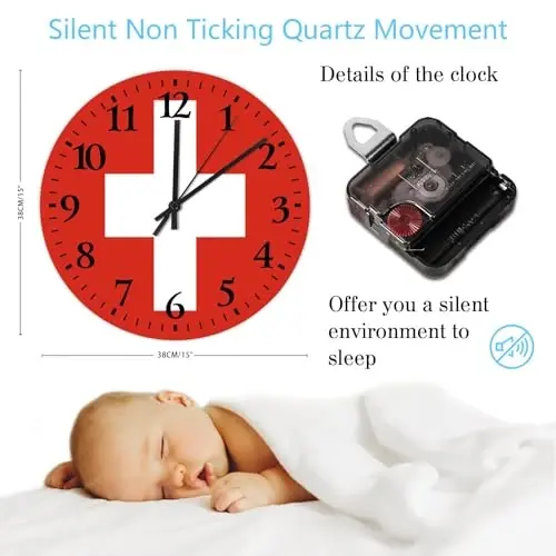 Silent Wall Clock Round Silent Non-ticking Switzerland Flag Country Wall Clocks Patriotic Vanity Gift Home Decoration for Workshop Home Porch 15 Inch is a special decoration product that will add elegance to your home or office and provide peace with its silence. This wall clock reflects your patriotic feelings with its Swiss flag theme, while at the same time offering a perfect combination of modern and rustic design. The product's ideal size of 15 inches allows it to easily adapt to any space. Whether you use it in your workshop, in any corner of your home, or on your porch, this clock will add a different atmosphere to its environment. Thanks to its silent operating mechanism, you can keep track of time without being disturbed by the ticking sound. This feature is ideal especially for bedrooms, study rooms or other areas where silence is important. The fact that the clock is made of high-quality materials offers long-lasting and durable use. The Swiss flag pattern on it attracts attention with its vibrant colors and detailed workmanship. This wall clock is not just a timekeeper, but also a work of art. If you want to give a meaningful gift to your loved ones, the Silent Wall Clock will be an excellent choice. Whether for a friend who has just moved into a new house or a loved one celebrating a special day, this clock offers them both a useful and aesthetic gift. The product is ready for use in a short time thanks to its easy installation feature. It works with just one AA battery, and the long battery life saves you from the hassle of constantly changing batteries. The wall clock is also very easy to clean; you can maintain its original shine by wiping it with a damp cloth. Bring the elegance and silence of Switzerland to your living spaces with the Silent Wall Clock. This unique design will complement your home's decor and impress your guests. Both functional and decorative, this wall clock will increase your quality of life and add value to your home.