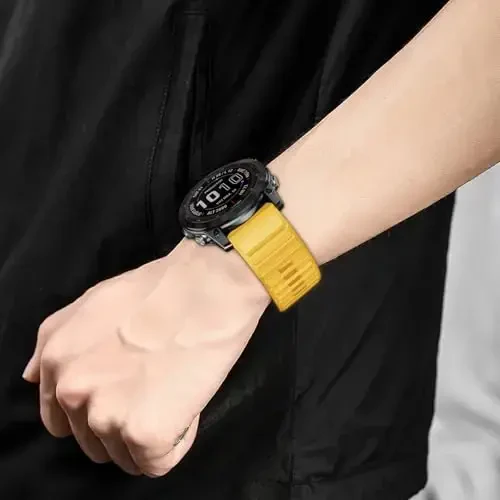 Этот 26-мм силиконовый спортивный ремешок Quickfit, совместимый с Garmin Enduro 3, Enduro 2, Fenix 8 Pro, Tactix 8 AMOLED (51 мм), Fenix 7X, Fenix 6X Pro Sapphire Solar, Fenix 5X Plus, Descent Mk2i/3i, Epix Pro и Quatix 8 (51 мм), — идеальный вариант для поддержания вашего активного образа жизни и обновления внешнего вида часов. Этот ремешок, изготовленный из высококачественного силикона, обеспечивает комфорт и долговечность в течение всего дня. Независимо от того, занимаетесь ли вы интенсивными тренировками или выполняете повседневные дела, этот ремешок надежно и удобно удерживает часы на запястье. Благодаря механизму крепления Quickfit вы можете легко снимать и надевать ремешок за считанные секунды. Эта функция позволяет переключаться между ремешками разных цветов и стилей и адаптировать часы к любой ситуации. Вы можете выбрать яркие цвета для занятий спортом или классические тона для более официальных мероприятий. Водо- и потостойкость силиконового материала делает этот ремешок идеальным для плавания, бега и других водных видов спорта. Поверхность ремешка легко чистится, поэтому он всегда выглядит как новый. Благодаря эргономичному дизайну он идеально сидит на запястье и не вызывает дискомфорта даже при длительном использовании. Этот силиконовый спортивный ремешок для часов — это не просто аксессуар, но и инвестиция, которая повышает производительность и срок службы ваших часов. Он обеспечивает безопасность ваших часов, позволяя вам выразить свой стиль. Выберите этот ремешок, чтобы в полной мере использовать потенциал часов Garmin и всегда выглядеть стильно. Если вы ищете прочный и стильный вариант, который будет соответствовать вашему напряженному образу жизни, этот силиконовый ремешок для часов — именно то, что вам нужно.