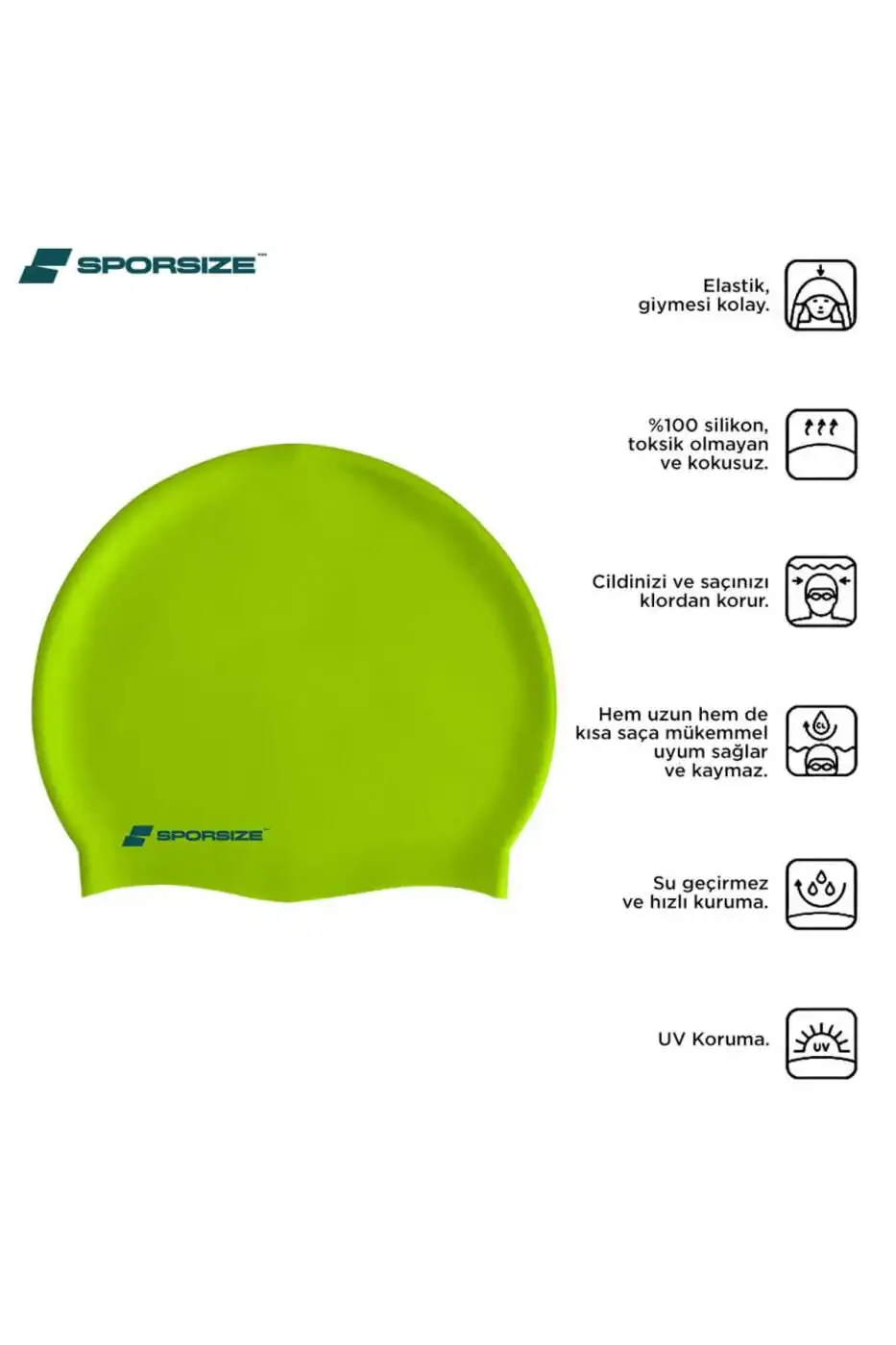 Silicone Swimming Cap - Deniz Ve Havuz Silikon Yüzücü Bonesi-Yeşil