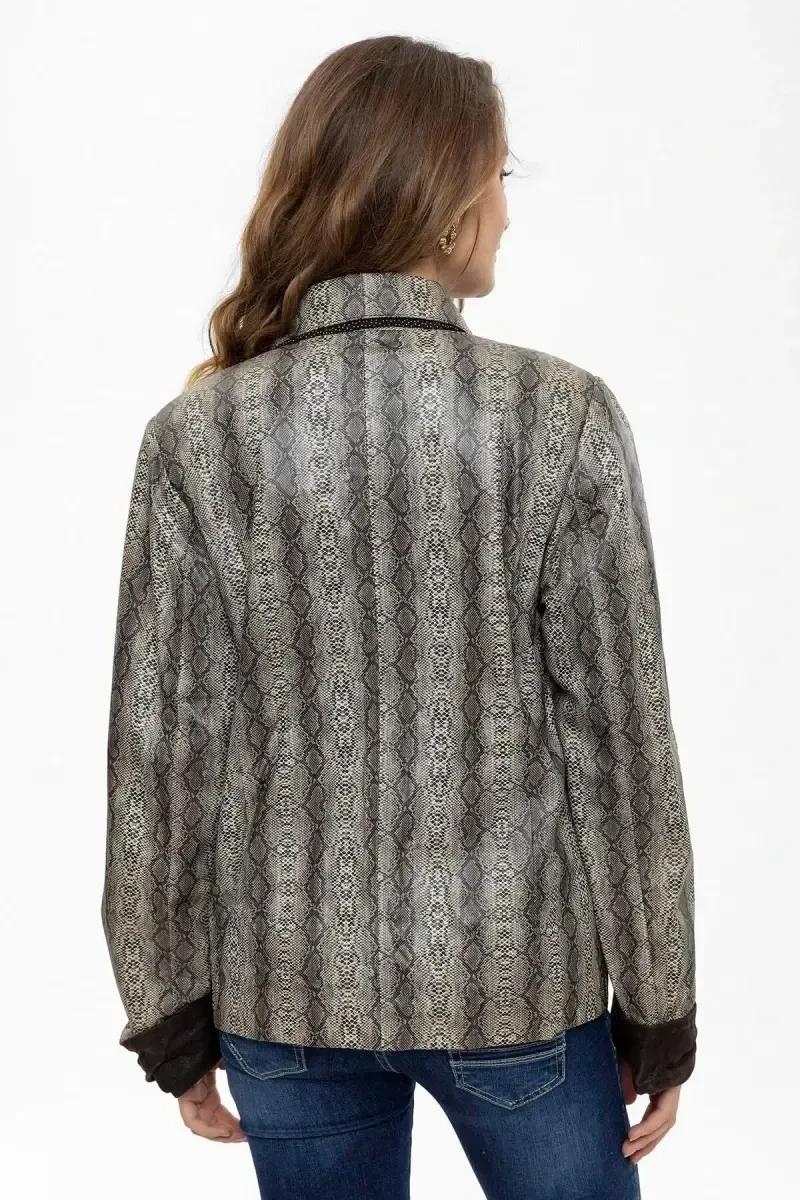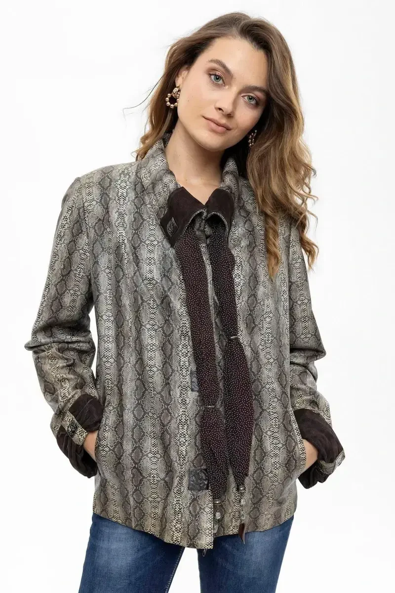 Nafis va zamonaviyligi bilan hayratga soladigan ko'rinishni taqdim etuvchi Silvia Ayollar Haqiqiy Teri Jeket, sizning sofistikatsiyalangan uslubingizni to'ldiradigan mukammal tanlovdir. Yumshoq va sifatli haqiqiy teridan tayyorlangan jaket, kofe piton bosmasi bilan noyob zamonaviylikka ega bo'ladi, shuningdek, sharf detali bilan nafis bir teginish qo'shadi. Chit-chit yopiladigan dizayni, ham zamonaviy, ham amaliy foydalanishni taqdim etadi.