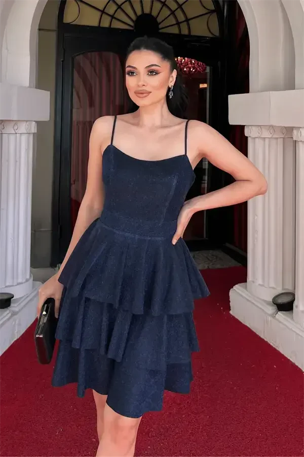 PRODUCT FEATURES:* Pattern: Plain* Material: 95% Polyester 5% Elastane* Mini* Back Tie* Glittery Fabric* Strappy* Unlined* Fabric Type: Woven* Style: Club / Party