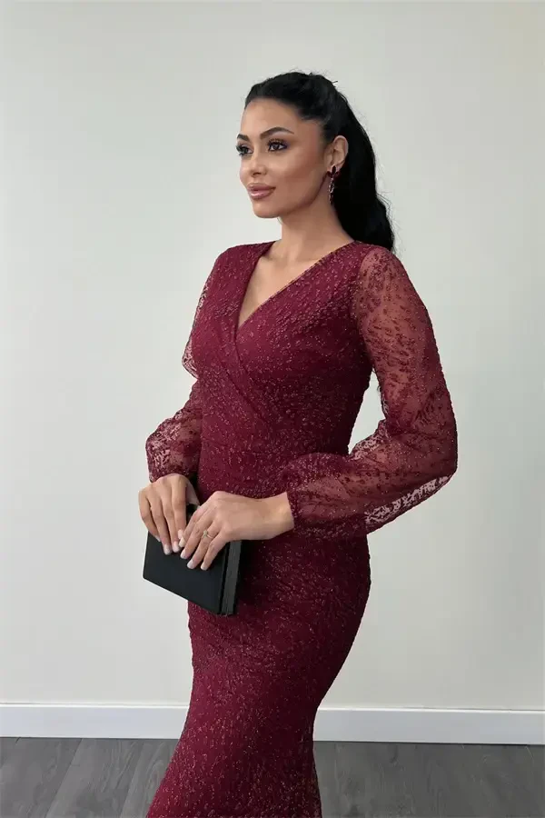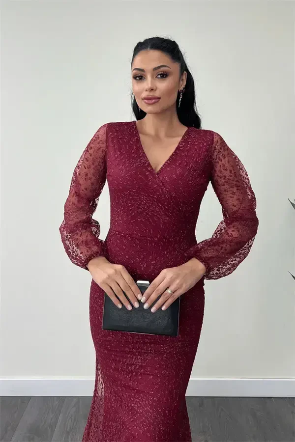 **Simli Tül Matoli Jiyakali Balik Kuyrukli Ko'ylak - BORDÒ**