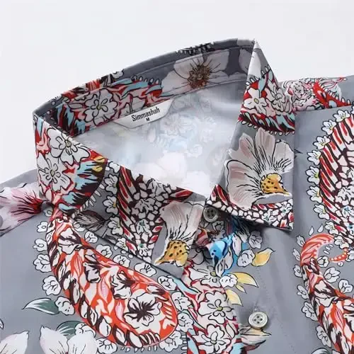 Hawaiian ko'ylak: Yozgi Unisex plyaj ko'ylagi | Simmashah - Aloha uslubi, qisqa yengli, tugmali, naqshli, qulay va tez quriydigan mato