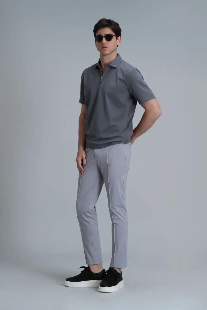Combining style and comfort, the Simon Smart Men's Chino Pants Slim Fit Grey will become an indispensable part of your wardrobe. Made from lightweight and breathable cotton fabric, these pants offer all-day comfort. The slim fit cut fits your body perfectly and creates a stylish look. Its gray color is adaptable to various combinations and easily adapts to any style.