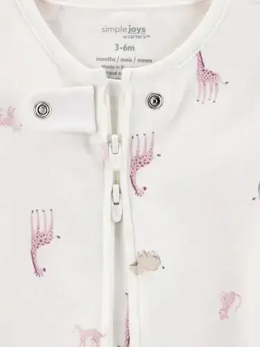 Simple Joys by Carter's Baby Girls' Cotton Footed Sleep and Play, 2-pack, offer your baby comfort and style in one! Designed specifically for your little princess's delicate skin, these sleep and play suits guarantee all-day comfort while captivating with their adorable designs. These suits, which will be indispensable in your baby's wardrobe, are candidates to be mothers' favorites with both their practical use and cute details. This set, which offers two different suits together, is budget-friendly and also enriches your baby's clothing options. Thanks to its soft cotton fabric, your baby's skin breathes, while its comfortable cut offers freedom of movement. Thus, your baby does not compromise on comfort while sleeping or playing. Moreover, one of the most striking features of these overalls is the cute animal character designs on the feet. These fun details add joy to your baby's every moment and help you create a special style for her. The full-length zipper on all the overalls makes dressing and undressing easy, while the chin guard protects your baby's delicate skin from zipper damage. With their vibrant colors and adorable patterns, these overalls will add color to your baby's every moment. Produced with Simple Joys by Carter's quality, these overalls do not contain any substances harmful to your baby's health. These overalls, which you can use safely, also attract attention with their long-lasting and durable structure. Thanks to its fabric that is resistant to frequent washing, its colors do not fade and it maintains its shape. Designed with your baby's comfort and health in mind, these overalls offer an option that mothers can choose with peace of mind. Whether it's sleep time or play time, these overalls will accompany your baby in every moment and give her a cute look. Don't miss the Simple Joys by Carter's Baby Girls' Cotton Footed Sleep and Play, 2-pack to add color to your baby's wardrobe and offer her unique comfort!