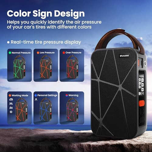 Agar siz yuqori unumli va ko'p funksiyali havo pompasi qidirsangiz, Tire Inflator Portable Air Compressor siz uchun ideal tanlovdir. Velosiped, to'p, mototsikl va avtomobil shinalarini shishirish uchun 4 ta oldindan o'rnatilgan rejim bilan jihozlangan ushbu simsiz raqamli havo pompasi hayotingizni osonlashtiradi. Lava lampasi dizayni va 20L oqim tezligi bilan u zamonaviy va kuchli qurilmadir. Kecha foydalanishni osonlashtiradigan ichki LED chiroq yordamida siz hatto qorong'ida ham shinalaringizni osongina shishirishingiz mumkin. Tire Inflator Portable Air Compressor kuchli ishlashi, foydalanuvchilarga qulay interfeysi va uzoq muddatli batareyasi bilan ajralib turadi. 150 PSI/10.3 Bar maksimal bosimga erisha oladigan qurilma, yuqori momentli dvigateli tufayli tez va aniq shishiradi. Raqamli displeyi yordamida siz bosimni real vaqtda kuzatib borishingiz mumkin va kerakli bosimga erishilganda avtomatik o'chirish funksiyasi tufayli ortiqcha shishishning oldini olishingiz mumkin. Ushbu qurilma nafaqat velosiped pompasi; u avtomobil, mototsikl shinalari, sport to'plari, basseyn pufakchalari va boshqa ko'p narsalarni shishirishga qodir ko'p qirrali vositadir. Uyda, sayohatda va ochiq havoda dam olishda ajoyib yordamchidir. Qayta zaryadlanuvchi lityum-ion batareya bilan ishlaydigan qurilma uzoq vaqt foydalanish imkonini beradi va USB orqali zaryadlanishi mumkin. U 30 daqiqa davomida uzluksiz ishlashi mumkin va bir marta zaryadlash bilan 50 ta bo'sh to'p yoki 40 ta velosiped shinasini to'ldirishi mumkin. Shu bilan birga, u tashqi zaryadlash ehtiyojlaringizni qondirish uchun powerbank sifatida ham ishlatilishi mumkin. Bardoshli va yuqori sifatli materiallardan tayyorlangan Tire Inflator Portable Air Compressor tez-tez foydalanish va qiyin sharoitlarga bardosh bera oladigan darajada ishlab chiqilgan. Bundan tashqari, turli bosimlarda ishlaganda rangini o'zgartiradigan Lava Atmosfera Lampasi nafis ko'rinishni taqdim etadi va bosim darajasi haqida ma'lumot beradi. Oddiy bosimda yashil, yuqori bosimda qizil va past bosimda sariq chiroq yonadi. Sinov bosimi funksiyasi yordamida siz to'g'ri bosim darajasiga ishonchingiz komil bo'lmaganda oldindan sinovdan o'tkazishingiz mumkin.