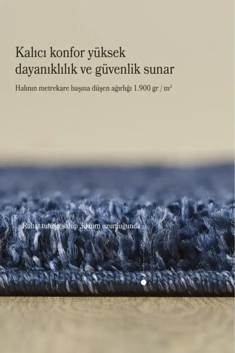 Meet the Single Color Plain Larcivert Soft Pile Plush Shaggy Rug that will change the atmosphere of your home and offer comfort and elegance together! This rug, in shades of space blue, will add elegance to any space from your living room to your sitting room, from your hallway to your kitchen, with its modern design and soft texture. This special rug, offered with the assurance of Red Halı, is not just a decoration element, but also an investment that adds value to your living spaces. Thanks to its soft plush shaggy weave, it leaves a unique feeling under your feet, while its navy blue color adds serenity and elegance to the environment. This rug, which offers safe use thanks to its non-slip base, is also a practical choice with its easy-to-clean feature. This rug, which does not contain any harmful components, is a product that you can safely use in every corner of your home. Its single-color plain design perfectly complements the modern and minimalist decoration concept, while its 3 cm pile length adds a separate richness to the rug. Whether you create a stylish atmosphere in the living room, create a warm corner in the living room, or keep your feet warm in the kitchen; This rug is designed to meet every need. Do not miss this product offered at a special campaign price on Trendyol, change the atmosphere of your home!
