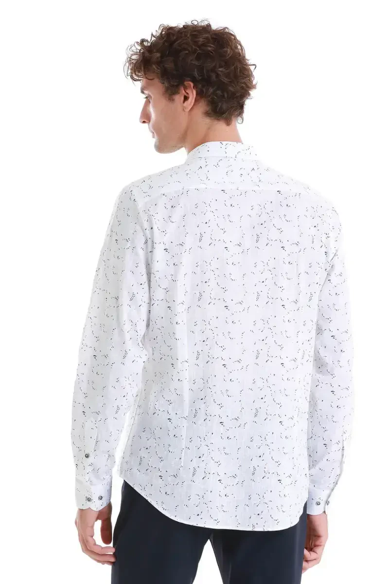 Синяя рубашка Comfort Fit с принтом для мужчин | Спортивная рубашка Slim Fit с длинными рукавами и узким воротником