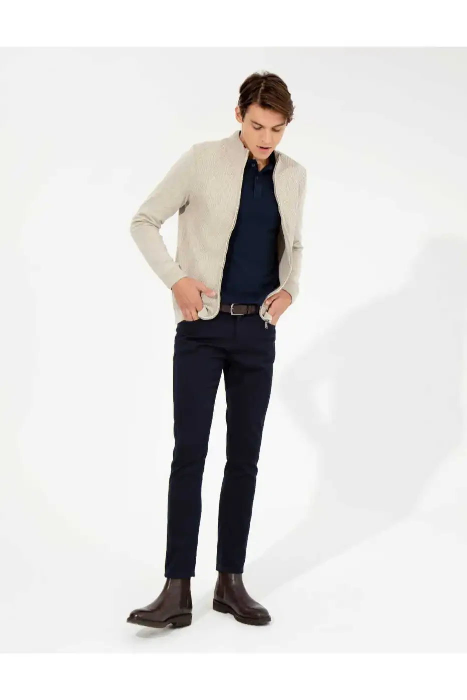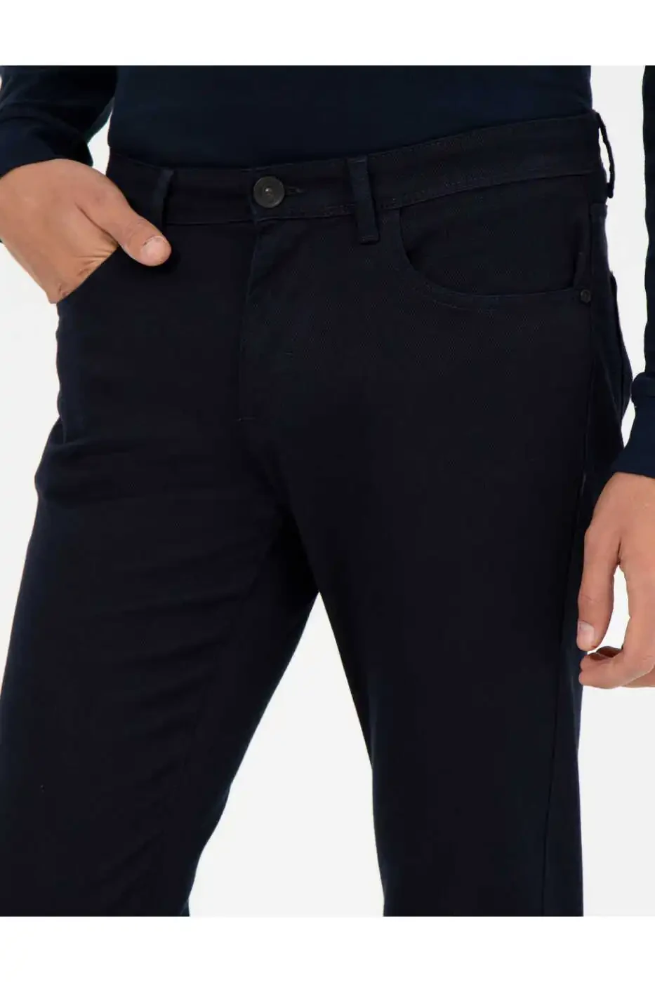 Темно-синие брюки Slim Fit из канваса, которые добавят изысканности вашему повседневному стилю, сочетают в себе вневременный стиль и комфорт. Сшитые из высококачественной канвасовой ткани, эти брюки выделяются своим комфортом и прочностью. Slim Fit идеально подходит к вашему телу, предлагая современный и стильный вид.