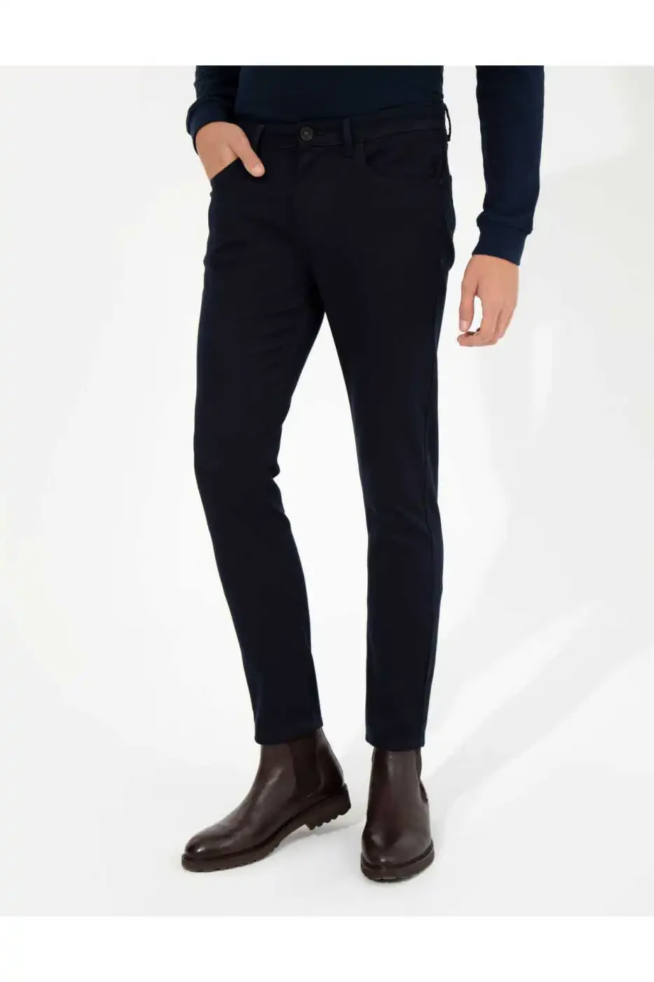 Почувствуйте стиль и комфорт вместе с темно-синими брюками Slim Fit из канваса.