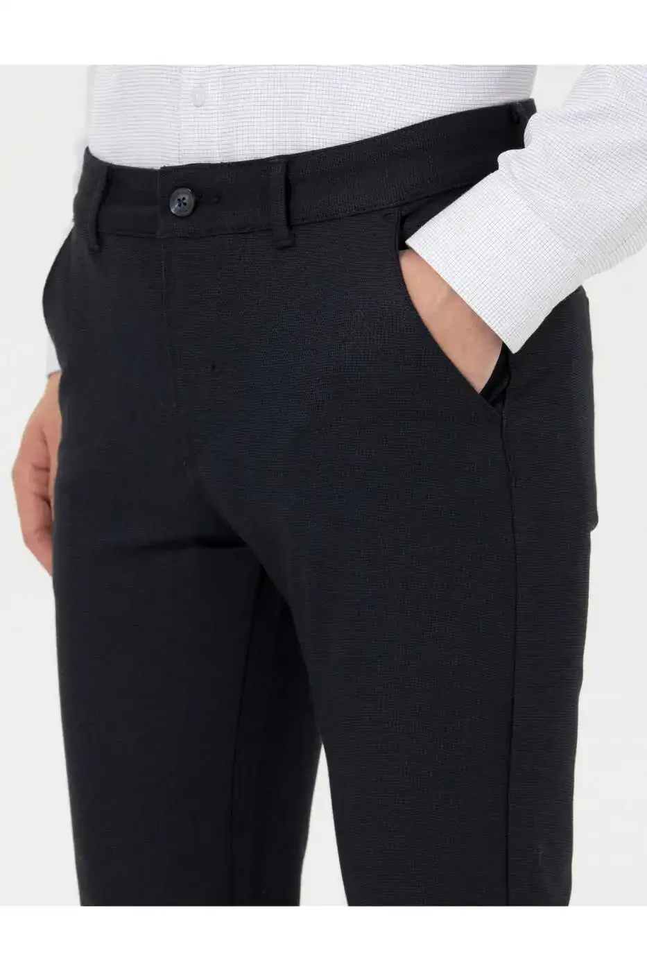 Созданные для тех, кто ищет и стиль, и комфорт в повседневной жизни, темно-синие узкие брюки из канваса - отличный выбор. Сшитые из легкой и дышащей канвасовой ткани, брюки обеспечивают комфортную носку в любое время года. Их узкий крой идеально подчеркивает фигуру, а элегантность подчеркивает ваш стиль.