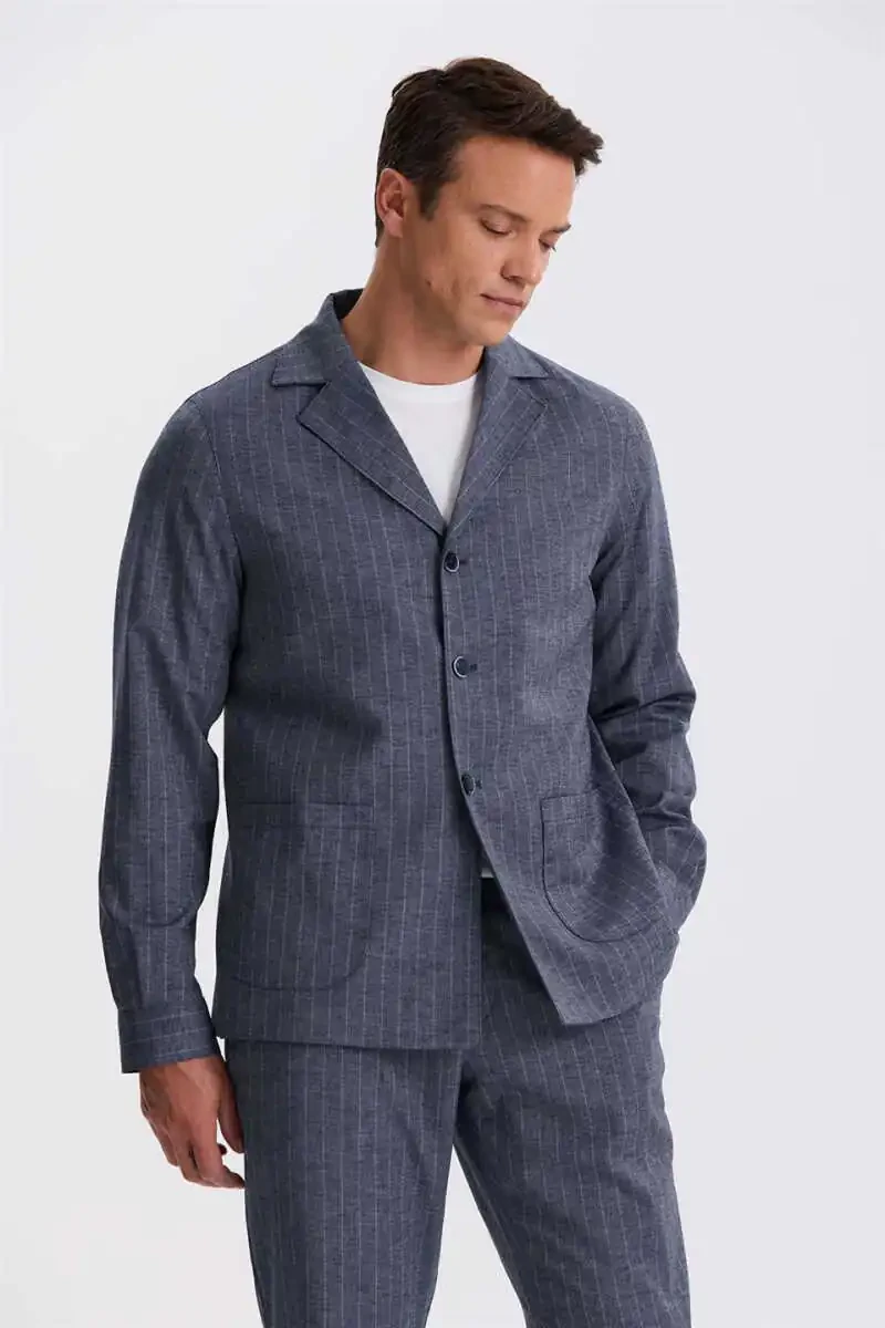 Благодаря летней структуре ткани, костюм обеспечивает комфортное и дышащее ношение. Узкий крой отлично подчеркивает фигуру. Апашский воротник создает современный и стильный образ. Двойные разрезы не ограничивают ваши движения, добавляя элегантный стиль. Карманы-карманы сочетают в себе практичность и эстетическую привлекательность. Для просмотра других цветовых и размерных вариантов, пожалуйста, ознакомьтесь с другими нашими продуктами.
