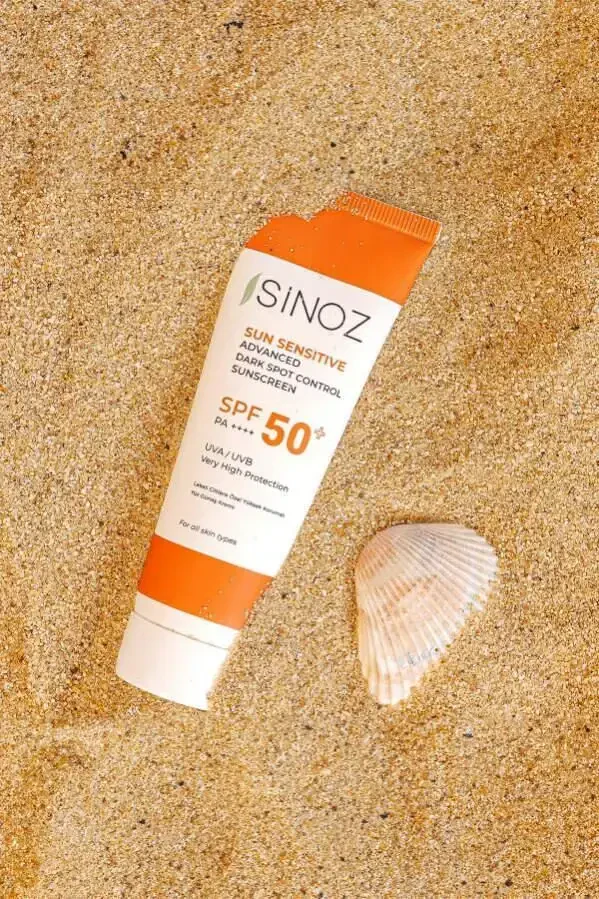 Sinoz Anti-Spot Sunscreen Cream SPF 50+ is specially developed for skin blemishes and signs of aging caused by the sun's harmful rays. With **SPF 50+**, it provides UVA/UVB protection, acting as a shield on your skin and helping to achieve an even-toned, smooth appearance.