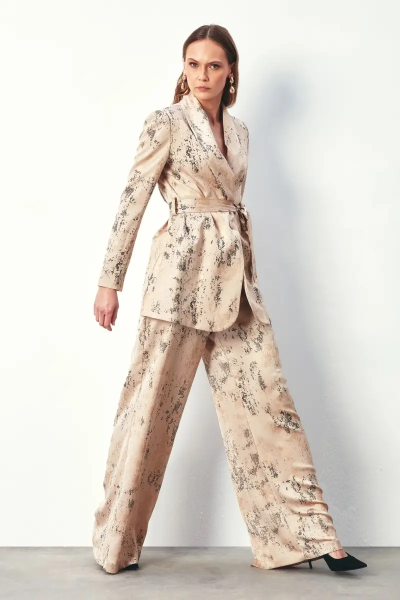 Оформите заказ и наслаждайтесь широкими брюками с блестящим рисунком!