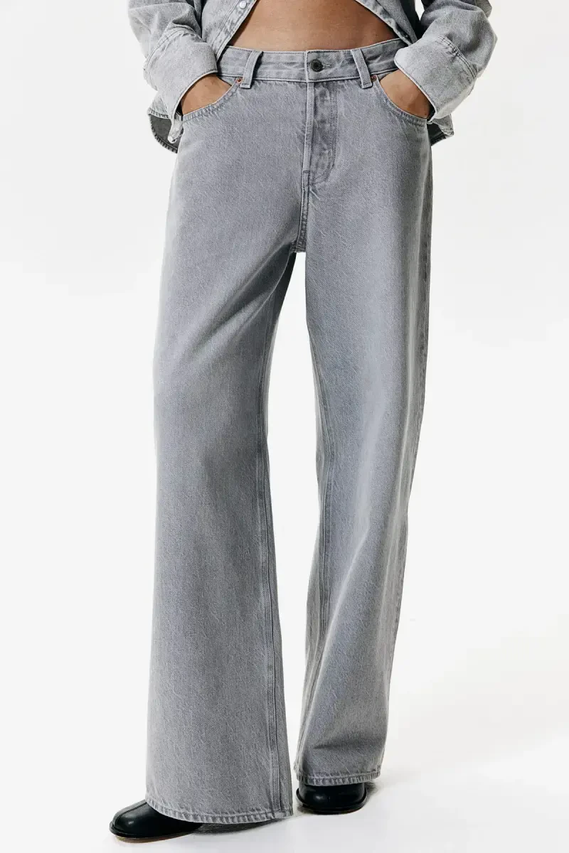 Брюки с высокой талией и широкими штанинами - 100% хлопок