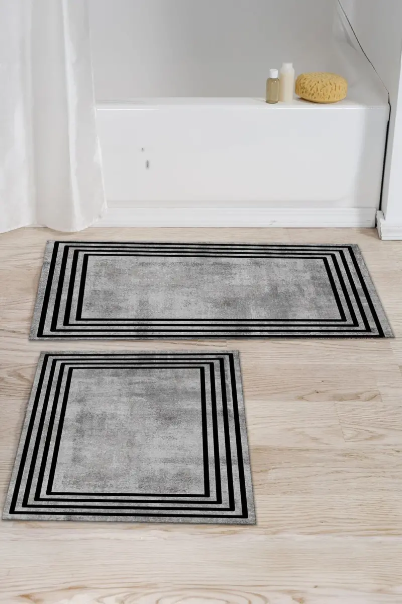 Hammom gilami va unitaz qopqog'i uchun 2 qismli to'plam - Sirpanmaydigan, yuviladigan, chiziqli naqsh