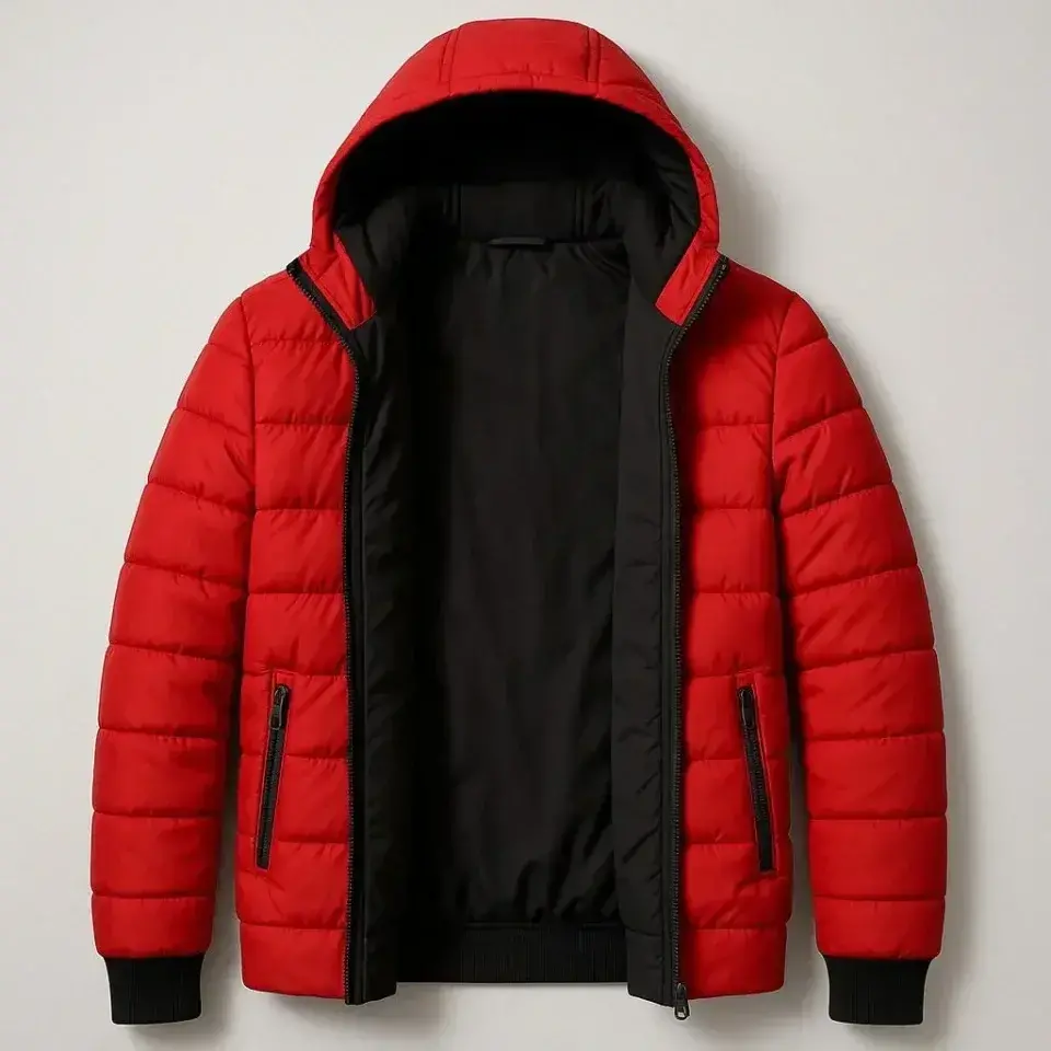 Şişme Kapüşonlu Fermuarlı Mont Su Itici Kapitone Astarlı Kumaş Cepli Kışlık Rahat Kalıp - Kırmızı