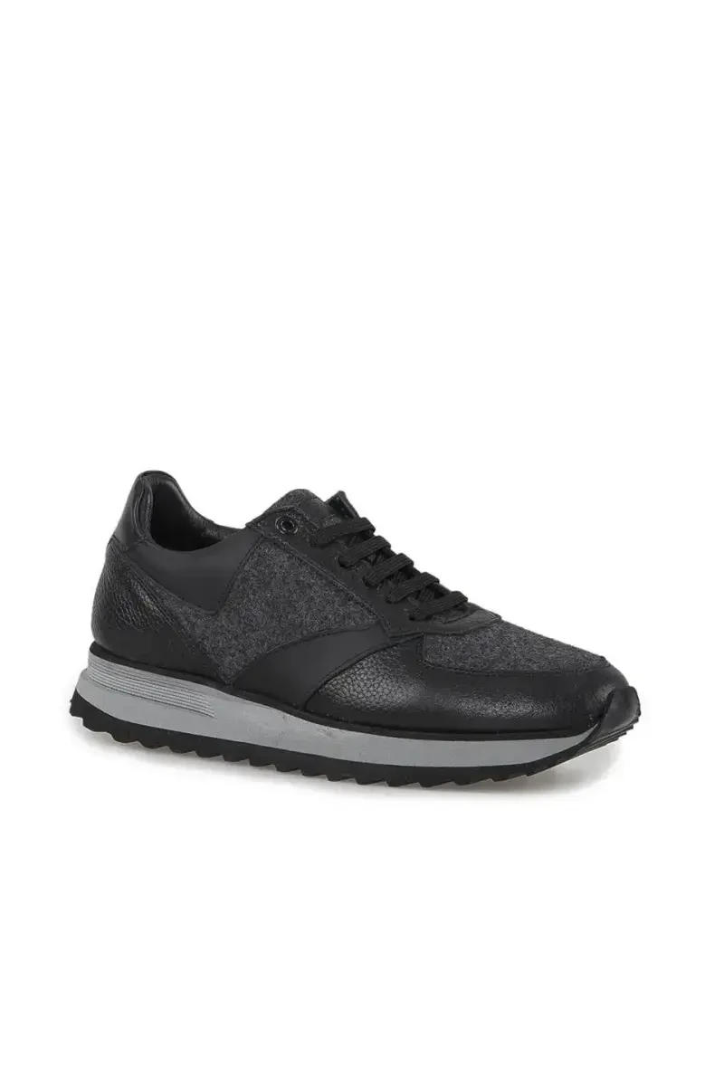 Black %100 Leather Lace-up Eva Sole Casual Shoe