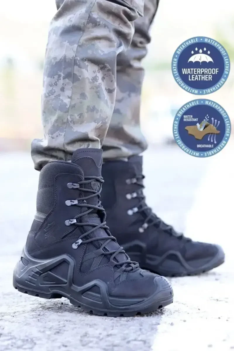 Черные Военные Ботинки WATERPROOF Зимние Мужские Трекинговые Кроссовки разработаны для обеспечения превосходной производительности и комфорта даже в холодных и суровых погодных условиях. Эти тактические ботинки, выделяющиеся своей водонепроницаемостью и термостойкостью, являются идеальным выбором для широкого спектра применений, от походов на природе до использования в городе, сохраняя ваши ноги сухими и теплыми. Этот специальный дизайн от Asix - незаменимый выбор для мужчин, которые ищут сочетание долговечности, стиля и функциональности. Благодаря превосходному качеству материалов и тщательному изготовлению, он обещает длительный срок службы. Вы можете легко сочетать его с любой одеждой благодаря его чисто черному цвету и современному дизайну и дополнить свой стиль. Эти ботинки - не просто обувь, а надежный партнер в сложных условиях. Благодаря подкладке из натуральной кожи ваши ноги дышат в течение всего дня, а прочная внешняя поверхность обеспечивает защиту от любых трудностей. Будь то в городе или на природе, почувствуйте комфорт и уверенность на каждом шагу с Черными Военными Ботинками WATERPROOF. Эти ботинки, которые позволяют вам безопасно передвигаться по обильному снегу, обледенелым поверхностям или грязным дорогам, являются кандидатом на то, чтобы стать незаменимыми зимой. Кроме того, они предлагают практичное использование благодаря своей легко очищаемой структуре. Если вы не хотите жертвовать своим стилем, бросая вызов трудностям зимнего сезона, эти ботинки идеально подходят для вас. Почувствуйте разницу на каждом шагу с Черными Военными Ботинками WATERPROOF.