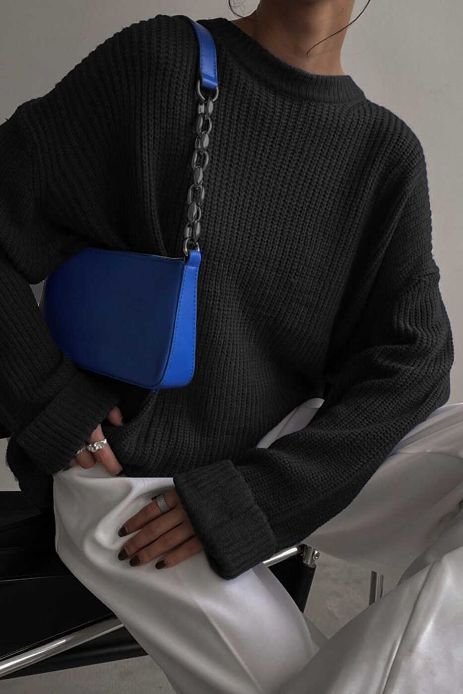 Siyah bisiklet yaka basic kazak MG1264 ile tarzınızı tamamlayın! Şimdi sipariş verin ve bu şık ve rahat kazakla stilinizi konuşturun.