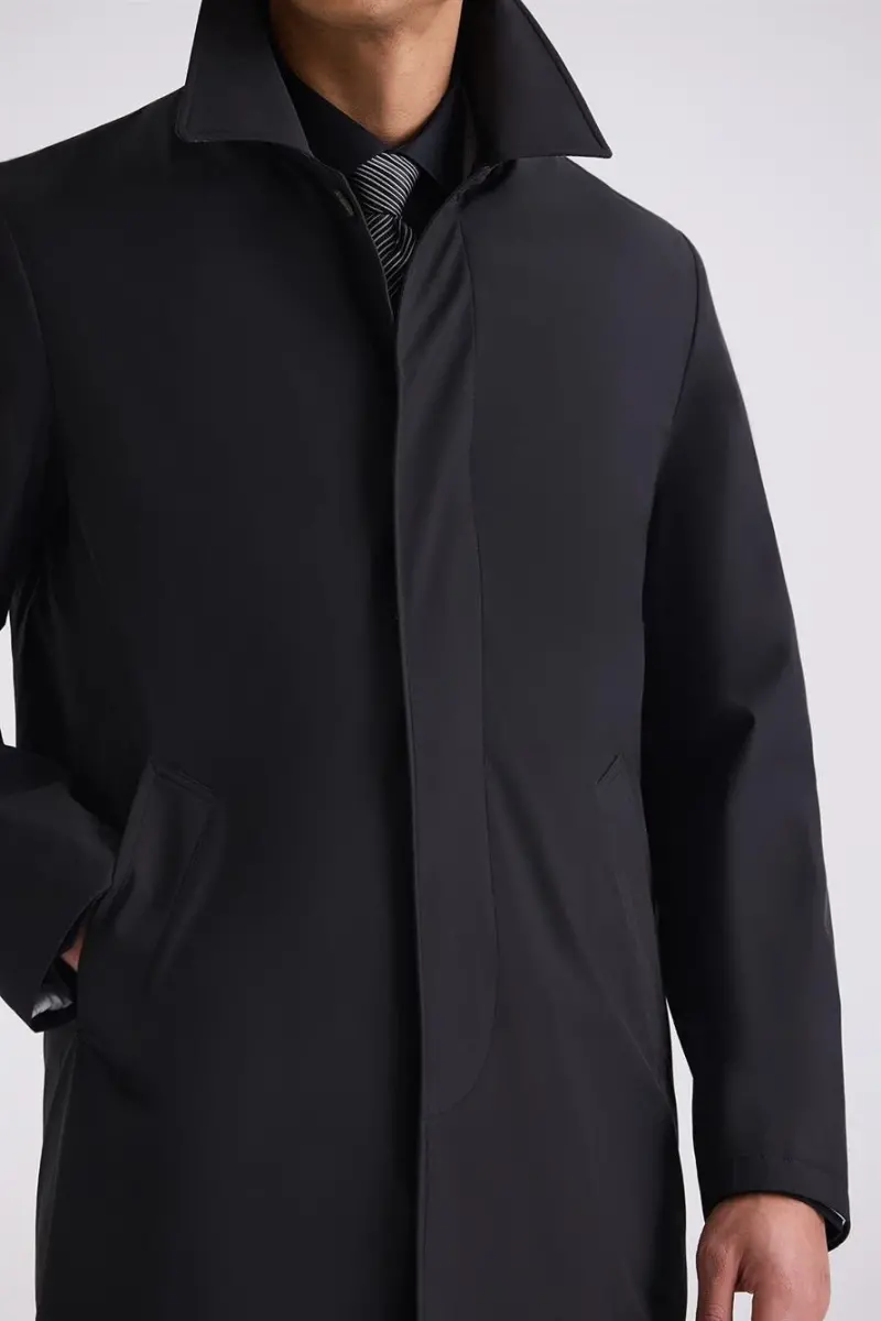 Siyah mont, comfort fit mont, gizli düğmeli mont, erkek mont, şık mont