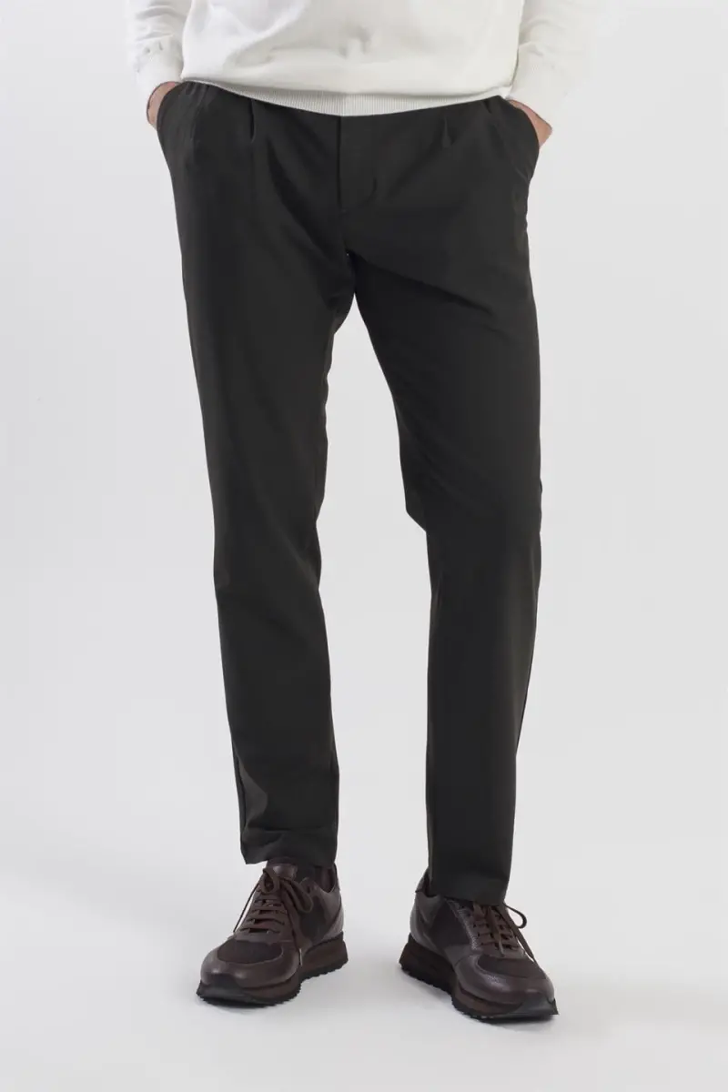 Siyah Comfort Fit Çift Cep Kapaklı Pileli Yan Cep Pantolon