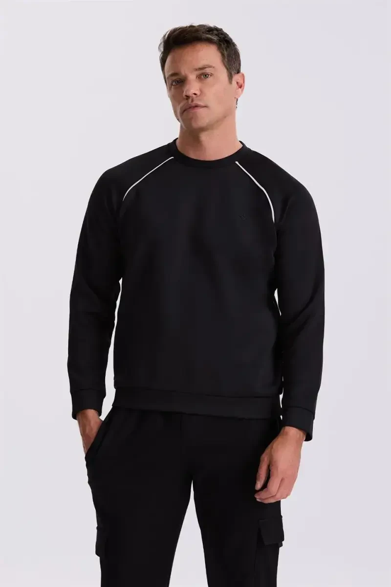 slim fit sweatshirt, pamuk karışımlı sweatshirt, bisiklet yaka sweatshirt, siyah sweatshirt