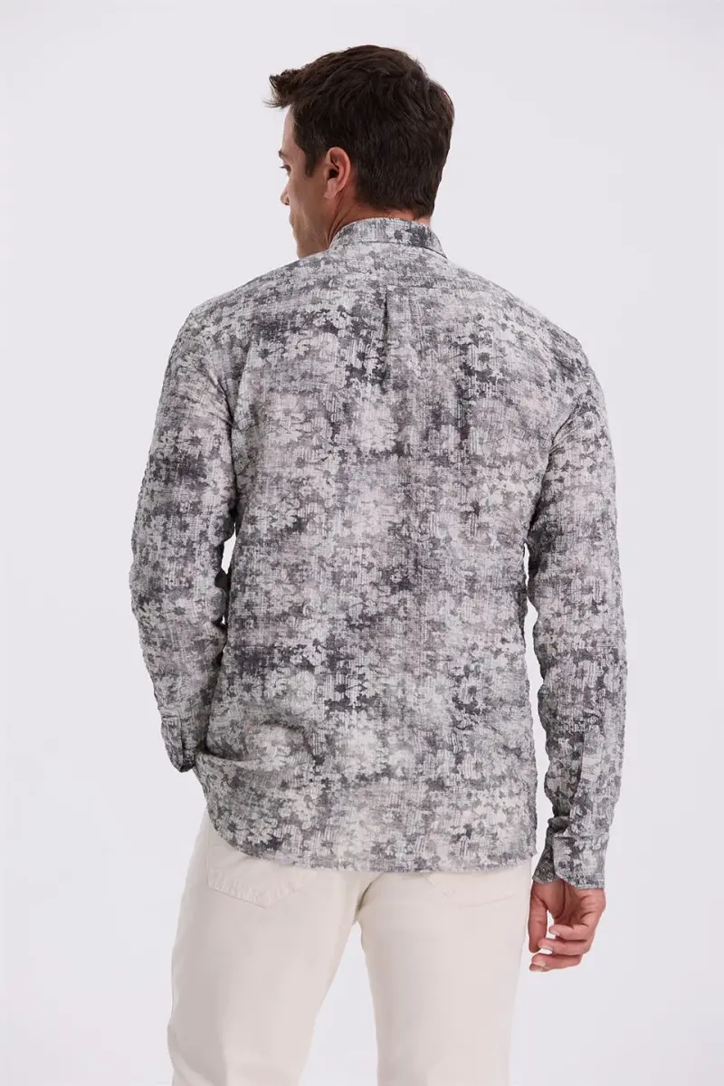 Siyah Desenli Düğmeli Yaka Comfort Fit Gömlek