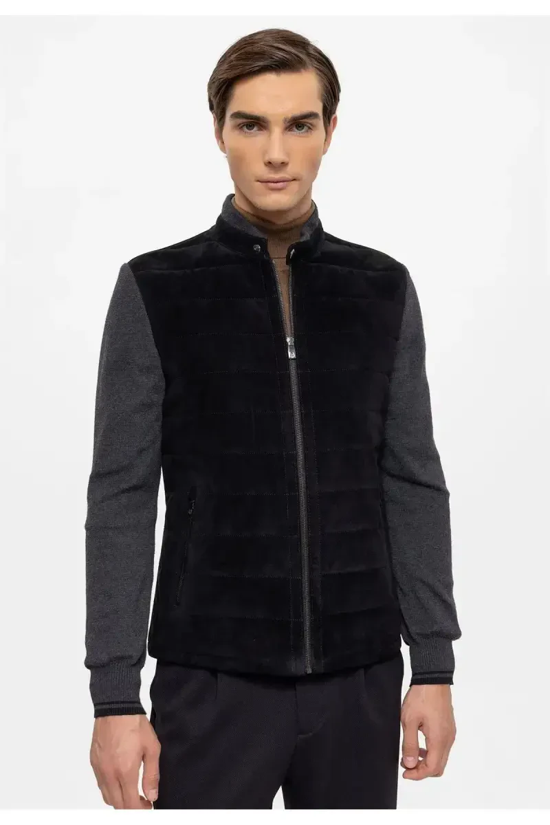 Мужская куртка из натуральной замши черного цвета Diego с трикотажными рукавами и воротником, стеганой подкладкой и молнией выделяется своей элегантностью и стилем, согревая вас в зимние месяцы. Изготовленная из натуральной замши, куртка обладает превосходным качеством и прочностью. Детали из трикотажа на рукавах и воротнике добавляют современный штрих стиля, отражая ваш стиль. Стеганая подкладка согревает вас в холодную погоду, а молния обеспечивает удобство использования.