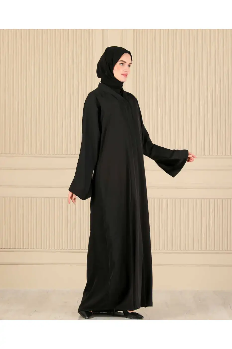 Наша черная простая ферадже и абайя, выделяющаяся своей вечной элегантностью и изящной посадкой, является одним из необходимых предметов гардероба каждой женщины. Эта модель, сочетающая в себе простоту и элегантность, подойдет для любого случая, делая вас элегантной и стильной всегда.