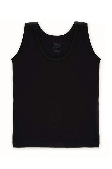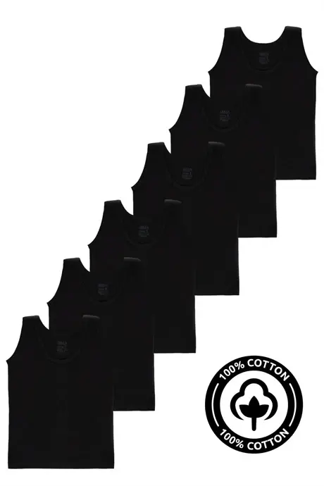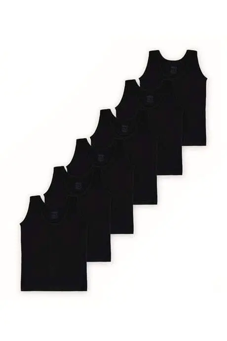 Erkek Çocuk Atlet Siyah %100 Pamuk Penye 6'lı Paket