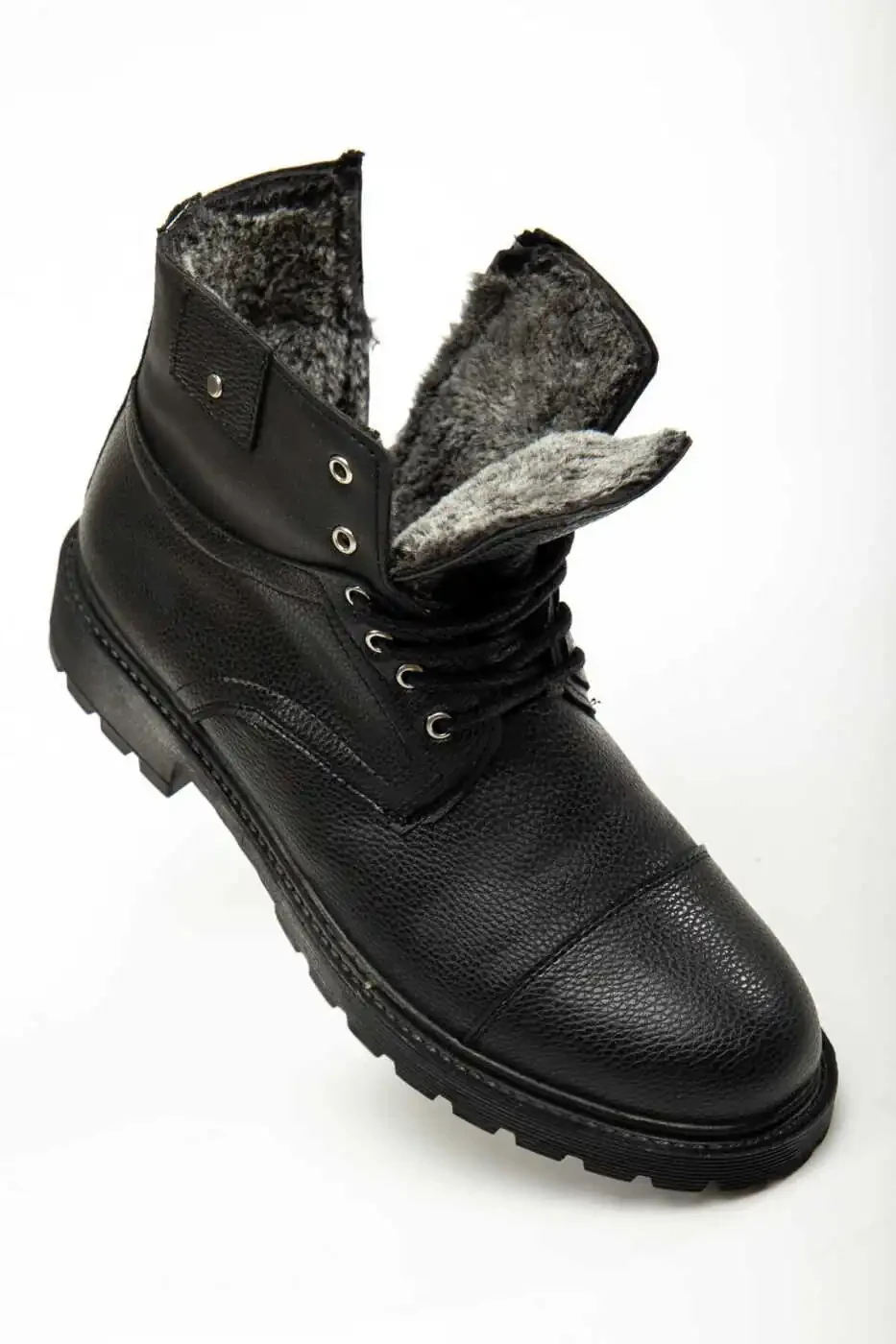 Black Everyday Fur-Lined Cold & Waterproof Guaranteed Durable Non-Slip Rubber Sole Half Boot
