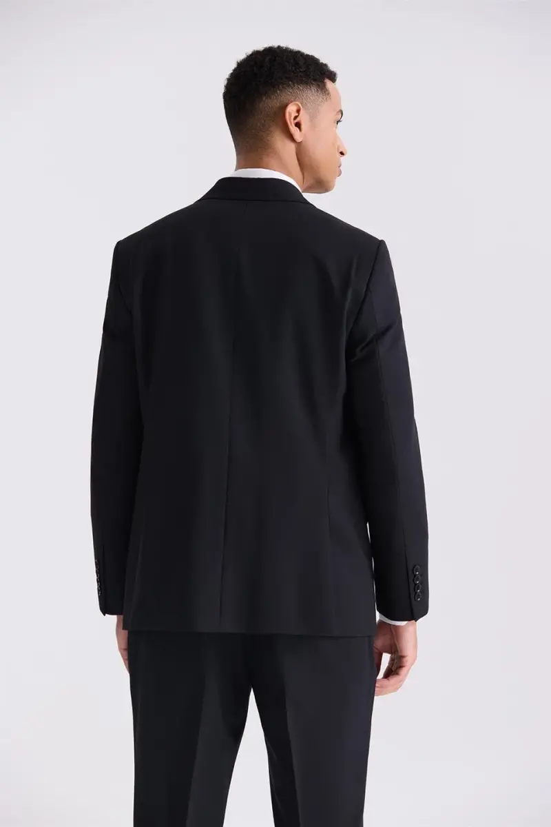 **Siyah Klasik Fit Sivri Yaka Yünlü Takım Elbise**