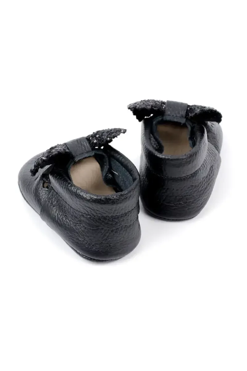Siyah Pullu Fiyonklu Deri Kız Bebek Makosen ile kızınızın ayakları her zaman şık ve konforlu olacak.
