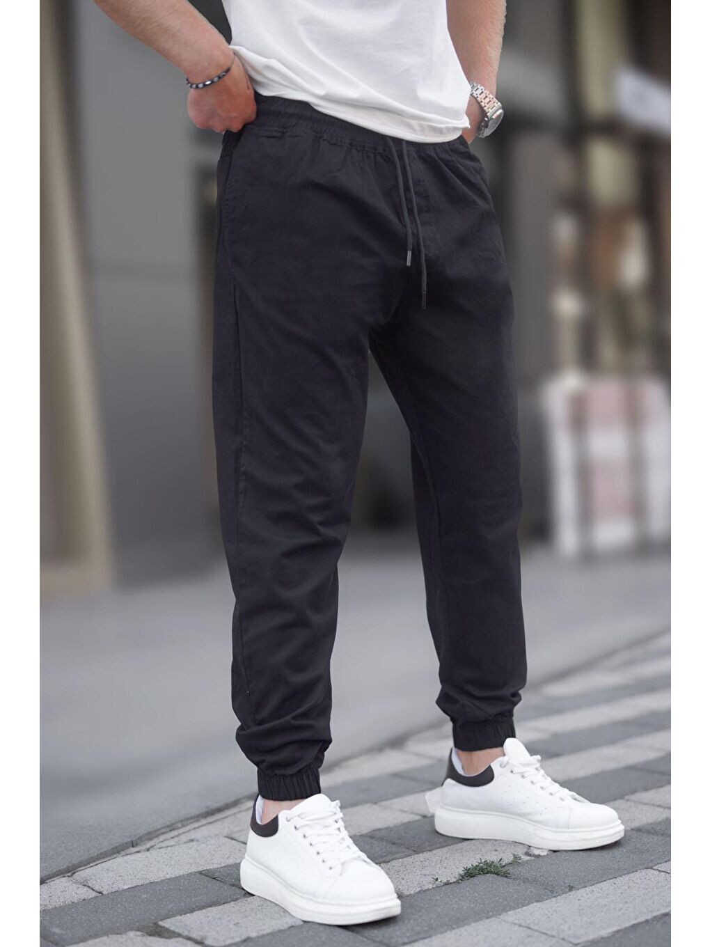 Siyah jogger pantolon, erkek jogger, relaxed fit pantolon, pamuklu pantolon, Madmext pantolon, lastikli paça, rahat pantolon, spor pantolon, günlük giyim, Türkiye üretimi