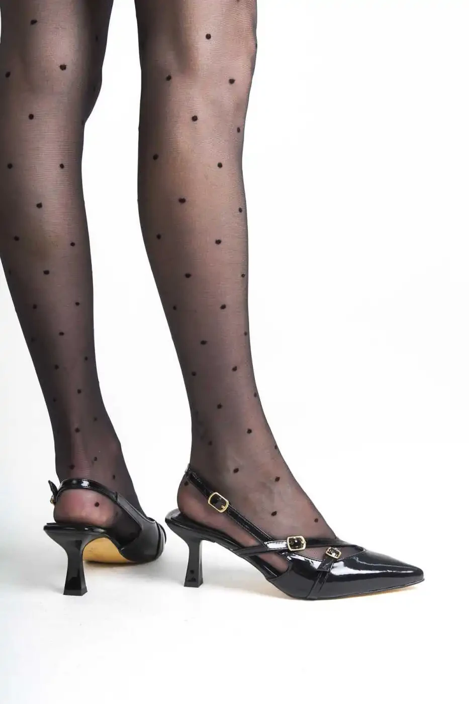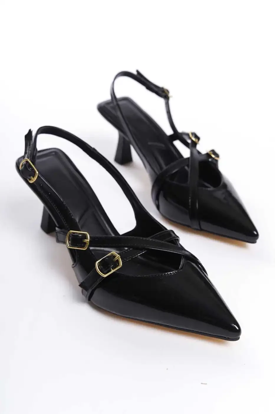 Siz de Siyah Rugan Sivri Burun Tokalı Topuklu Ayakkabı'nın şıklığını deneyimleyin ve her adımınızda kendinizi özel hissedin.