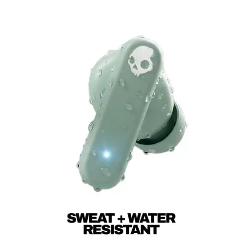 Skullcandy Smokin’ Buds Wireless Earbuds, Bluetooth Headphones, Noise Isolating Fit, Up to 20 Hours Battery, IPX4 Sweat and Water Resistant, Microphone for iPhone Android - Preppy Sage